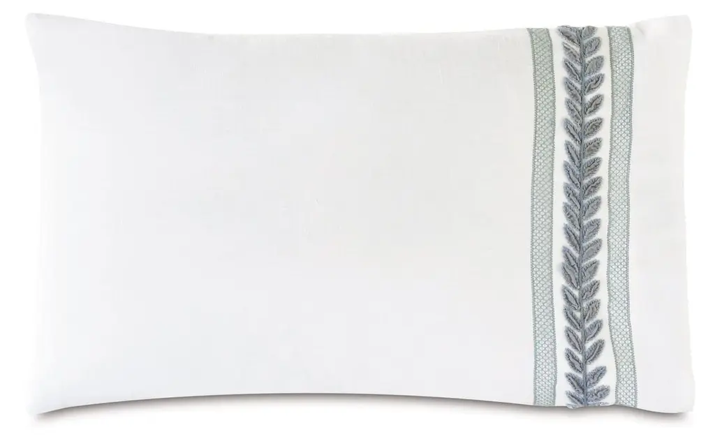 An elegant accent, this deep, hunter green pillow is contrasted with dainty, pale blue embroidery. Part of our Rifle Paper Co. x Loloi collaboration.