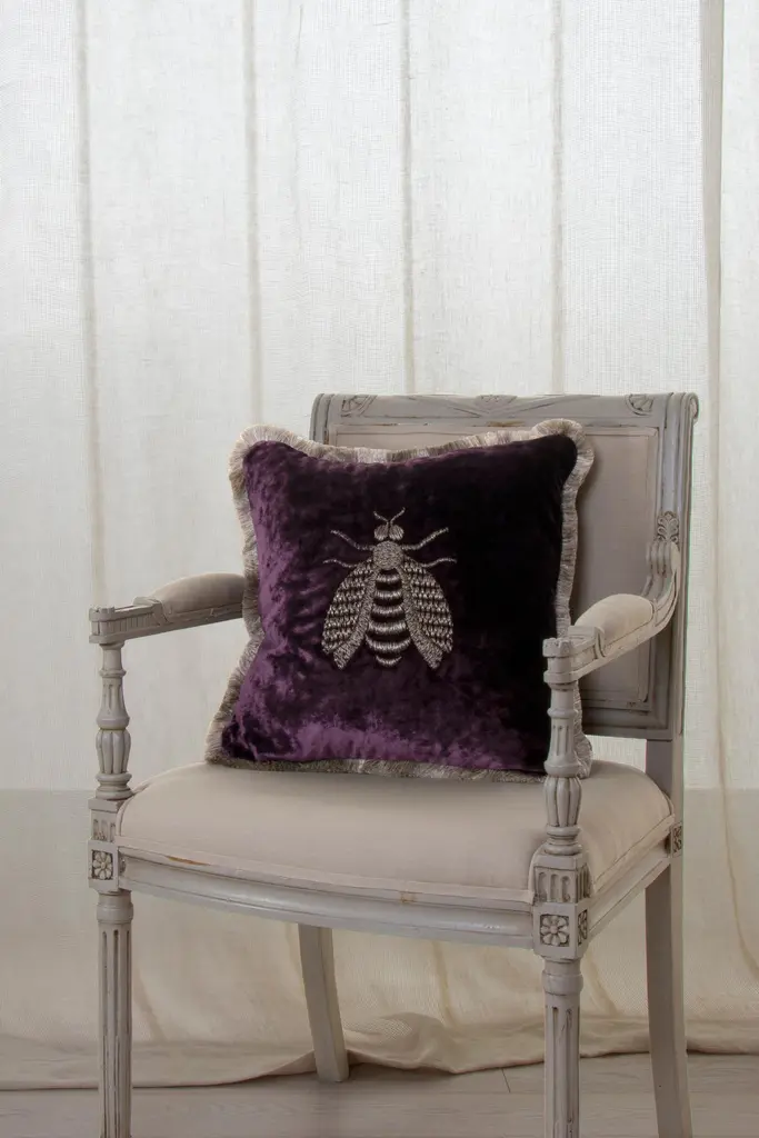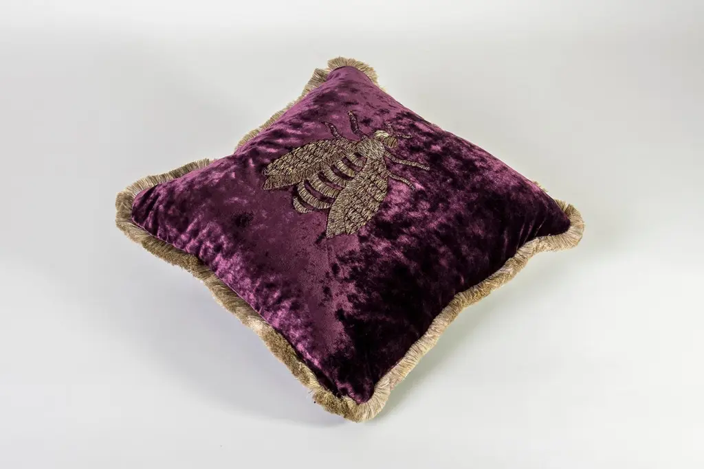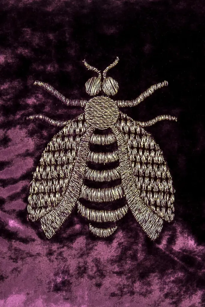 Estensi Cotton Velvet Pillow With Embroidered Queen Bee, Color Purple