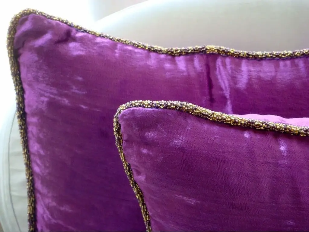 Our Bee pillow, embroidered on cotton velvet, is an exclusive piece of furniture that combines the elegance of the decorative pattern with the preciousness of the materials.The soft velvet provides a pleasant tactile sensation, while the original embroidery workmanship, done with special metallic luster yarns, recreates the effect of a metal foil corroded by time, giving a unique and sophisticated appeal.The absolute star of the pillow, the bee is a symbol of nature's harmony. Its pattern, made with a skillful interweaving of metallic yarns, gives a striking textural effect, enhanced by the contrast between the velvety surface and the brightness of the embroidery.A perfect blend of traditional craftsmanship and contemporary design, this pillow is not just a decorative accessory, but an authentic element of style, capable of enriching any room with refinement and personality.When ordering, please specify the desired color.