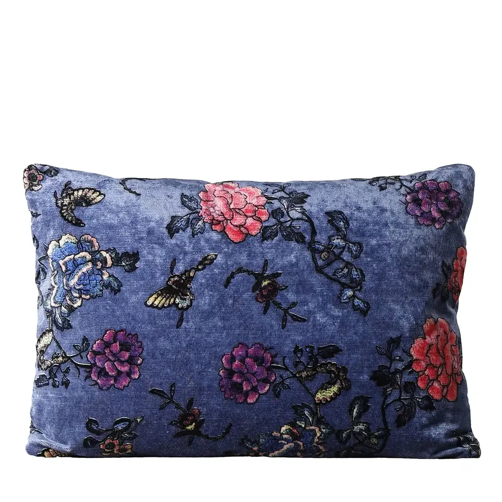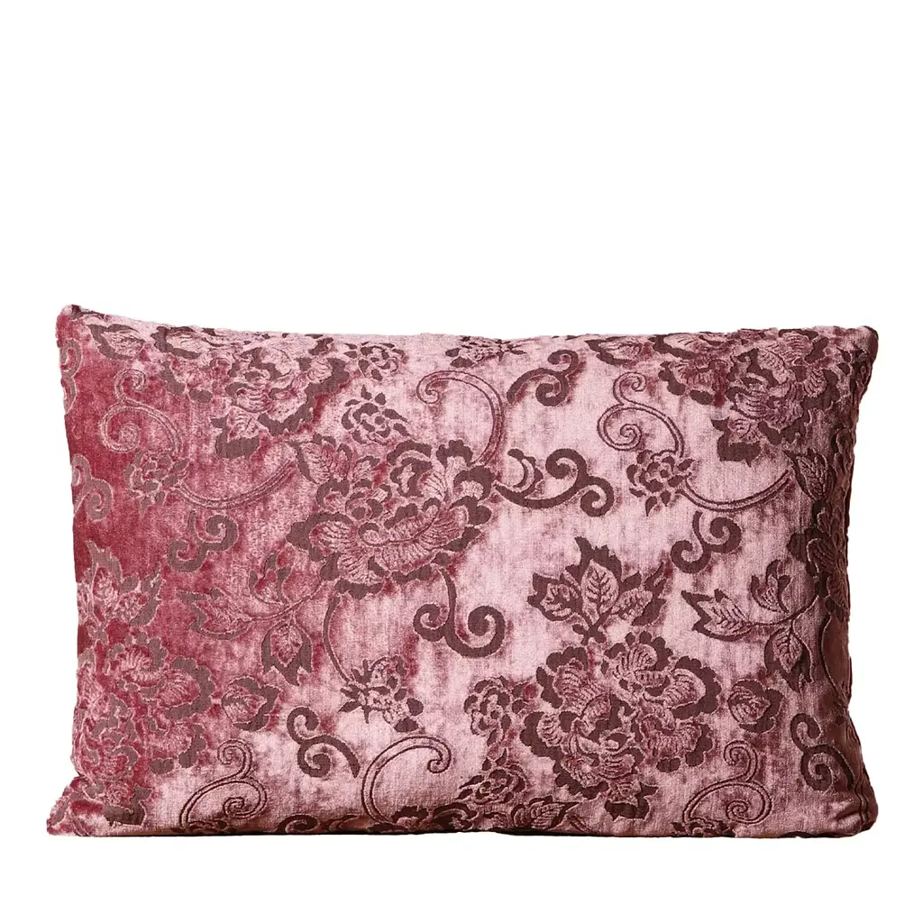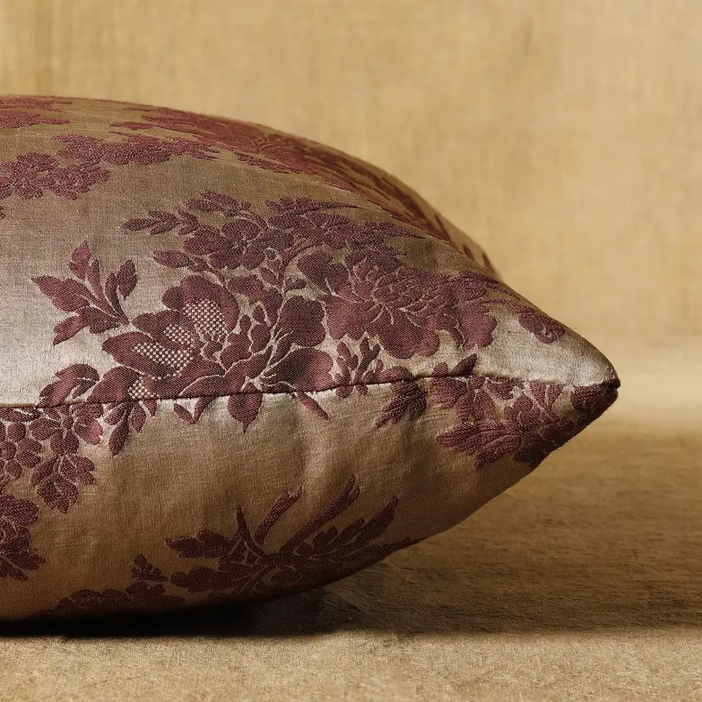The Estrania pillow, made in linen and silk jacquard, evokes a fantastical world. The opulent texture and richly hued overdye of the floral motif take us on a timeless dream journey, between the Palace of Versailles, the Schönbrunn Palace, and the Seraglio of Topkapi.