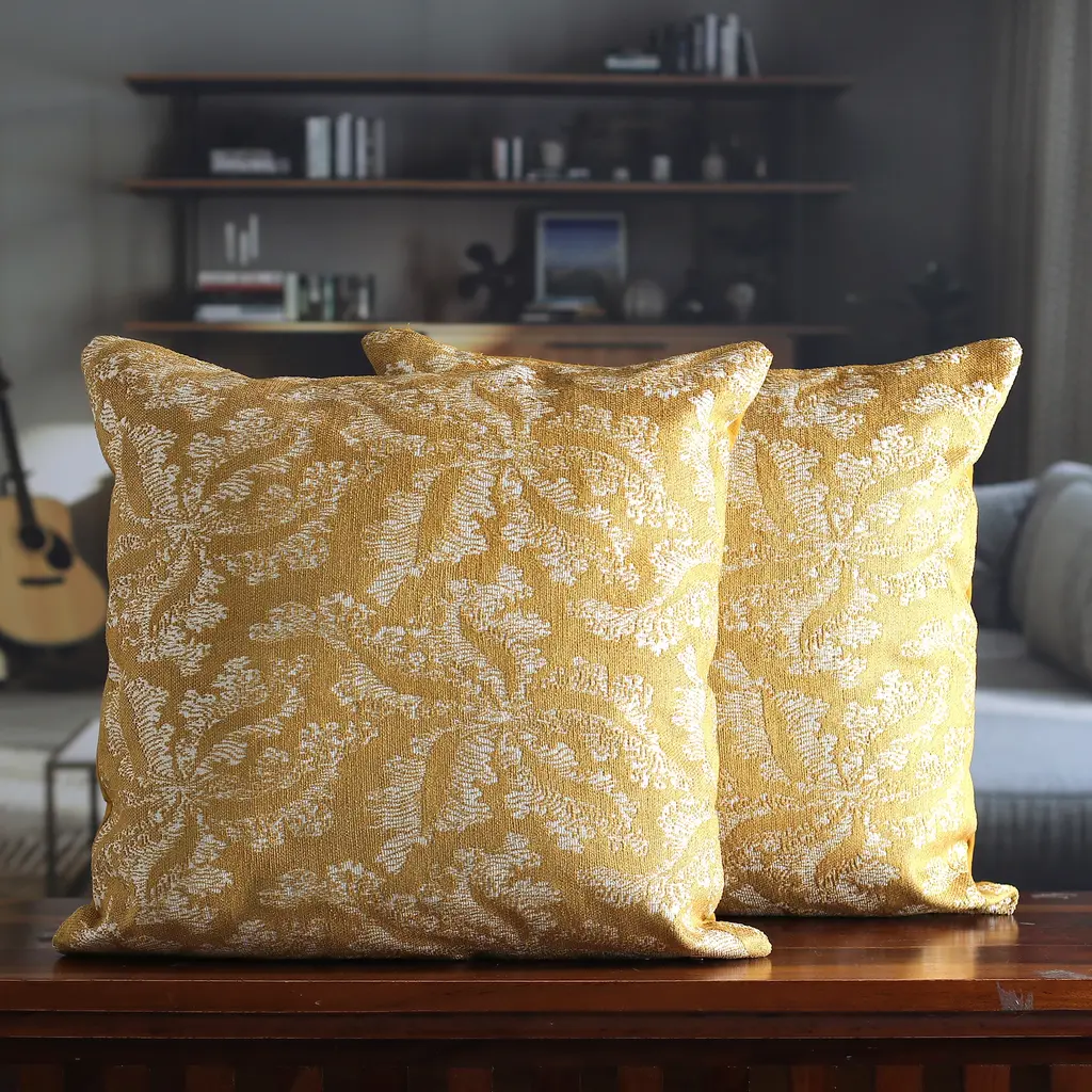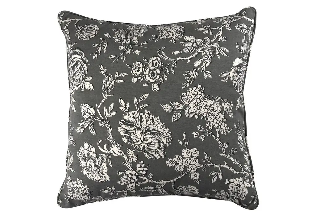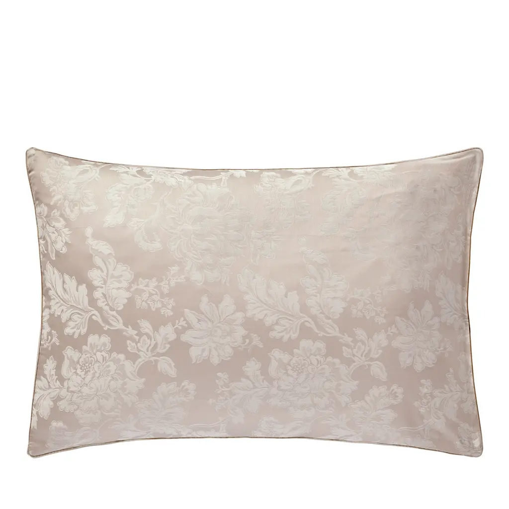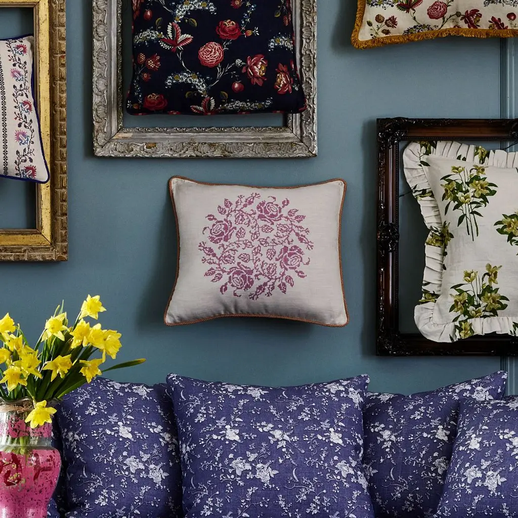 The Estrania pillow, made in linen and silk jacquard, evokes a fantastical world. The opulent texture and richly hued overdye of the floral motif take us on a timeless dream journey, between the Palace of Versailles, the Schönbrunn Palace, and the Seraglio of Topkapi.
