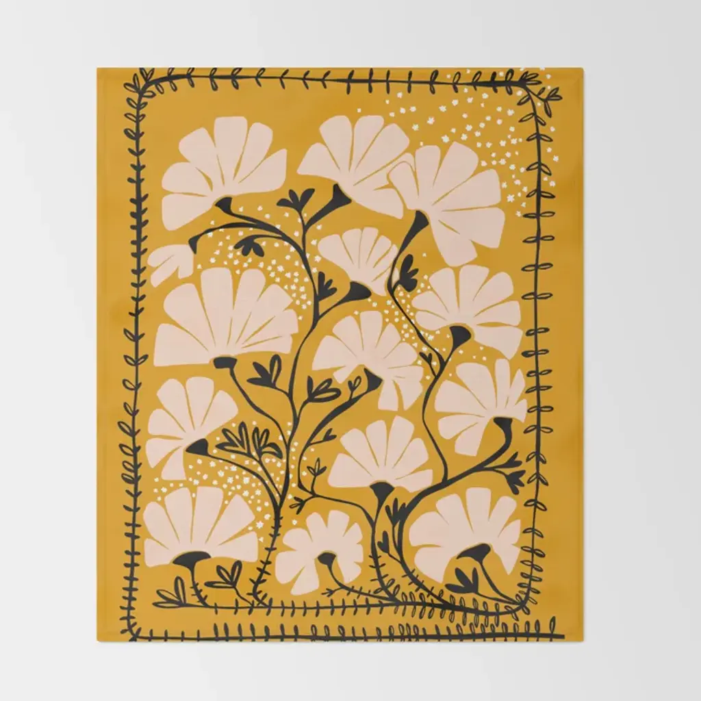 Ever Blooming Good Vibes Mustard Yellow Throw Blanket