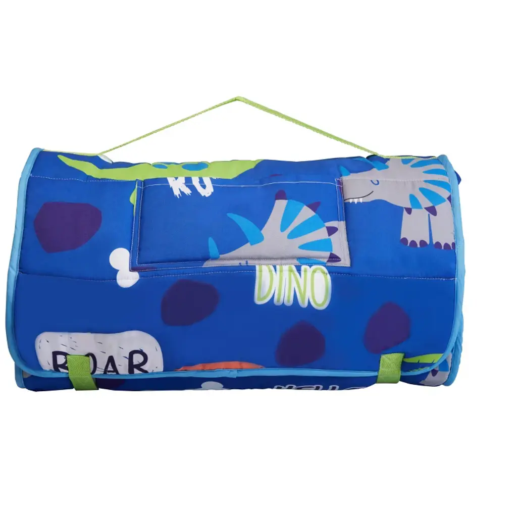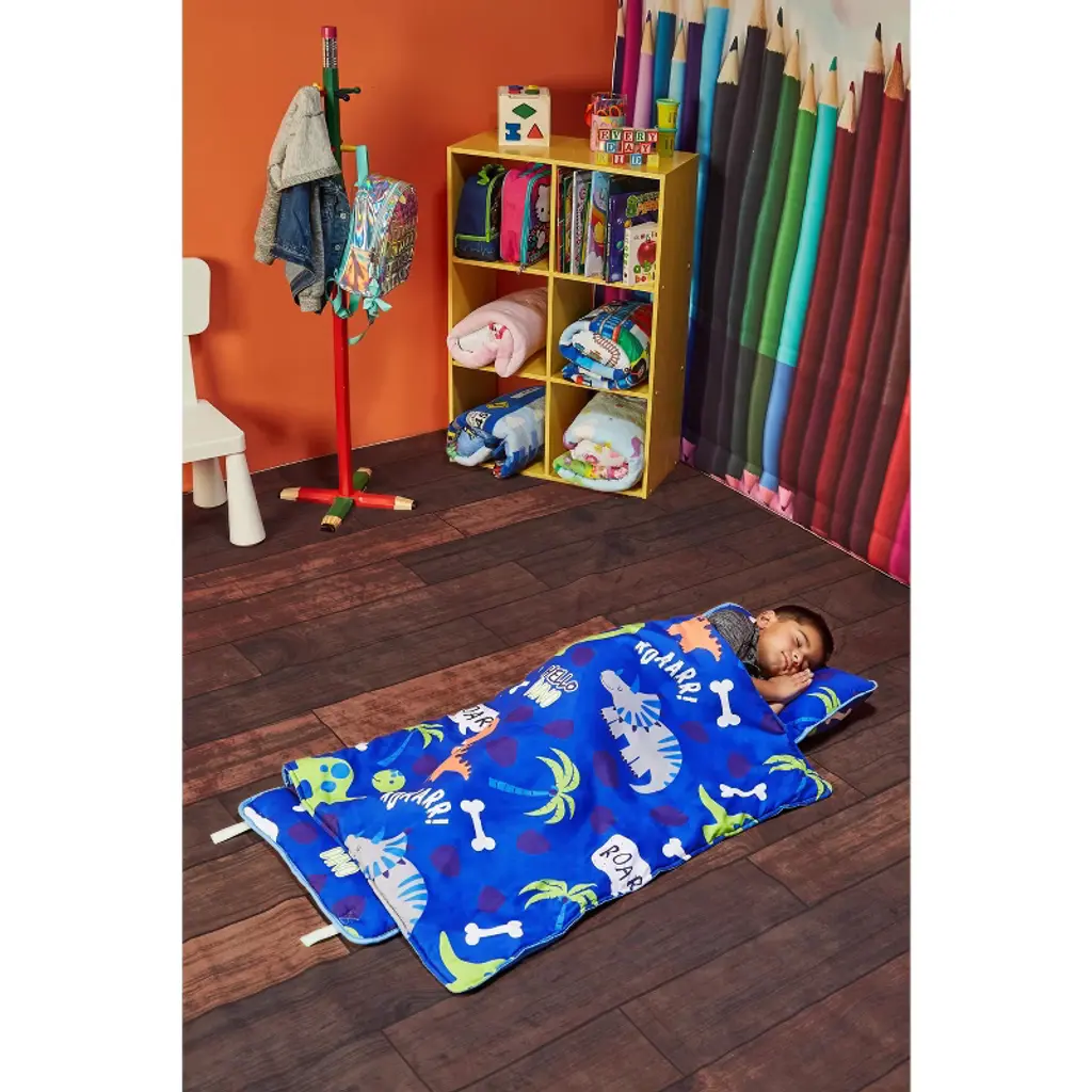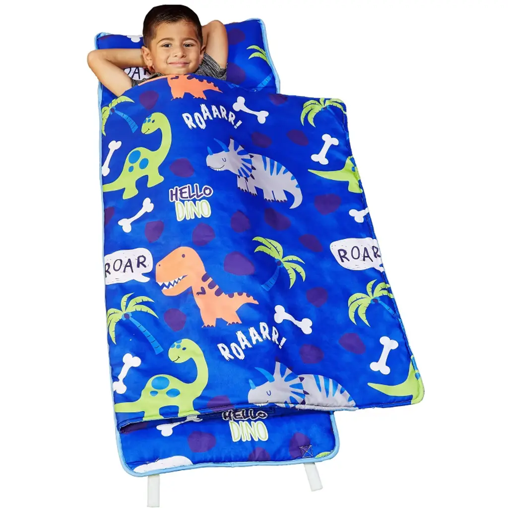 Everyday Kids Roarin' Dinos Nap Mat With Removable Pillow – Soft, Roll-up Sleeping Bag With Handle For Ages 3–6 – Ideal For Preschool & Travel