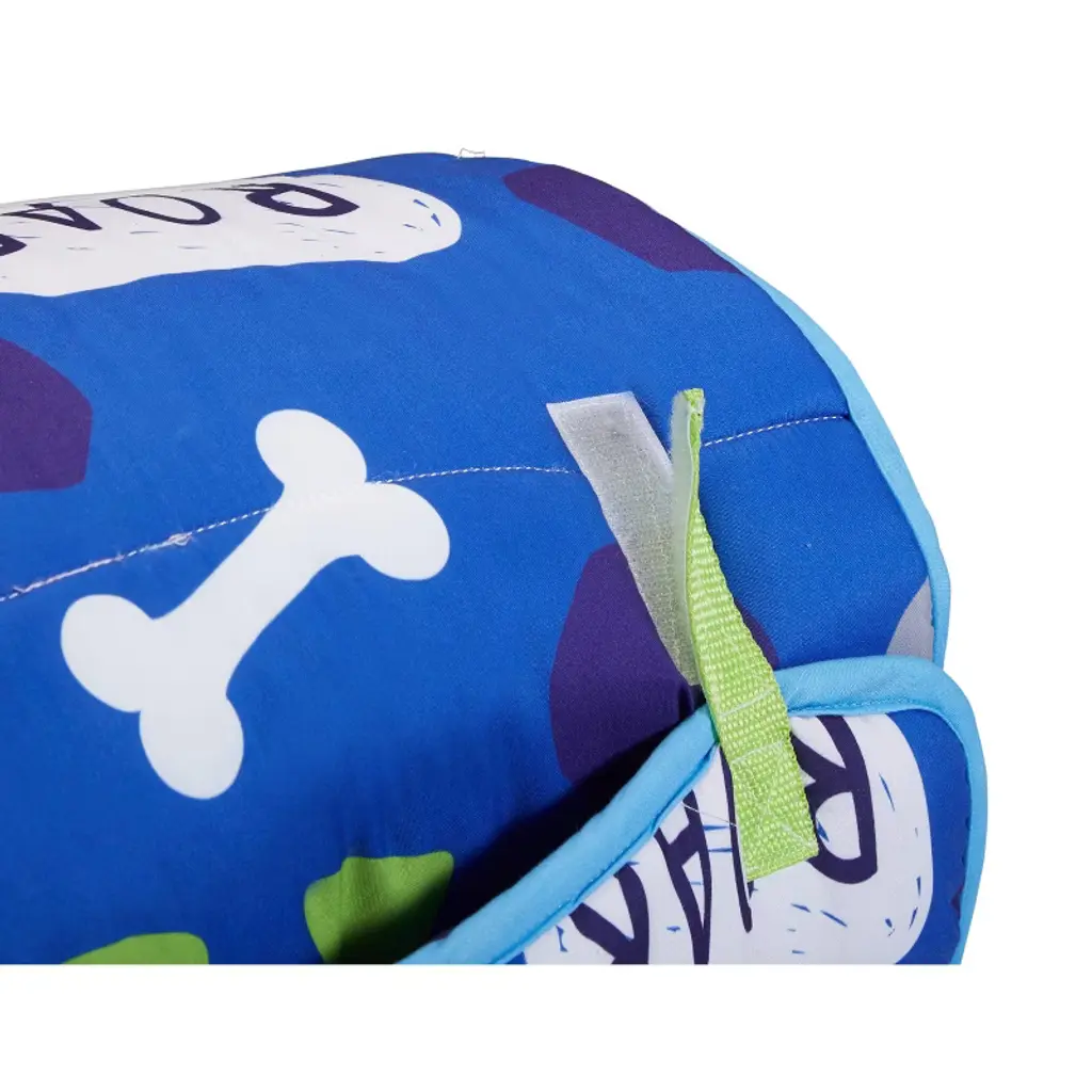 Your little adventurer will dream of big dinosaurs and prehistoric times when falling asleep on this boys nap mat. The front of the Roaring Dinos nap mat features all kinds of dinos with a blue background. On the reverse side and pillow, you’ll find a light blue background with a repeating motif of dinos, palm trees, and the roaring sound dinos make. The trim around the edges of this children construction sleeping bag is a complimentary shade of light blue and features a matching carry handle with hook-and-loop closures. A perfect nap mat for preschool, kindergarten and daycare for children ages 2 and up. The blanket is made of soft microfiber to keep kids comfortable and cozy while they sleep. Never worry about your child kicking off the covers with the attachable blanket. This mat helps them be excited for a nap and attain high-quality sleep.
