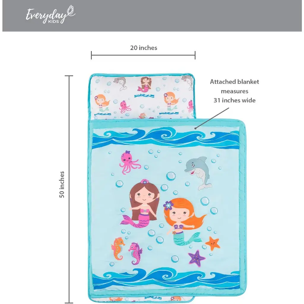 Everyday Kids Toddler Nap Mat – Underwater Mermaids – Soft Microfiber, Rollup With Handle & Pillow, For Preschool, Daycare, Or Travel -Ages 2-6 Years