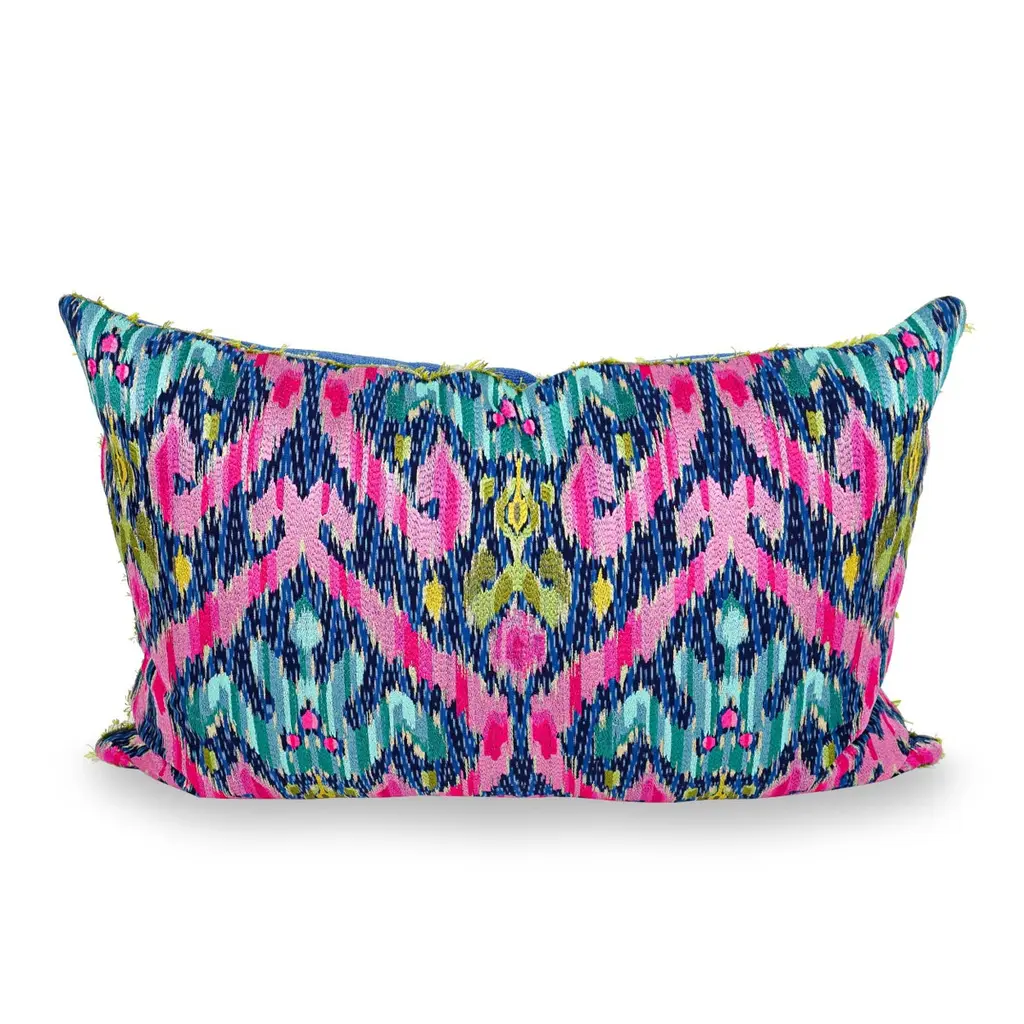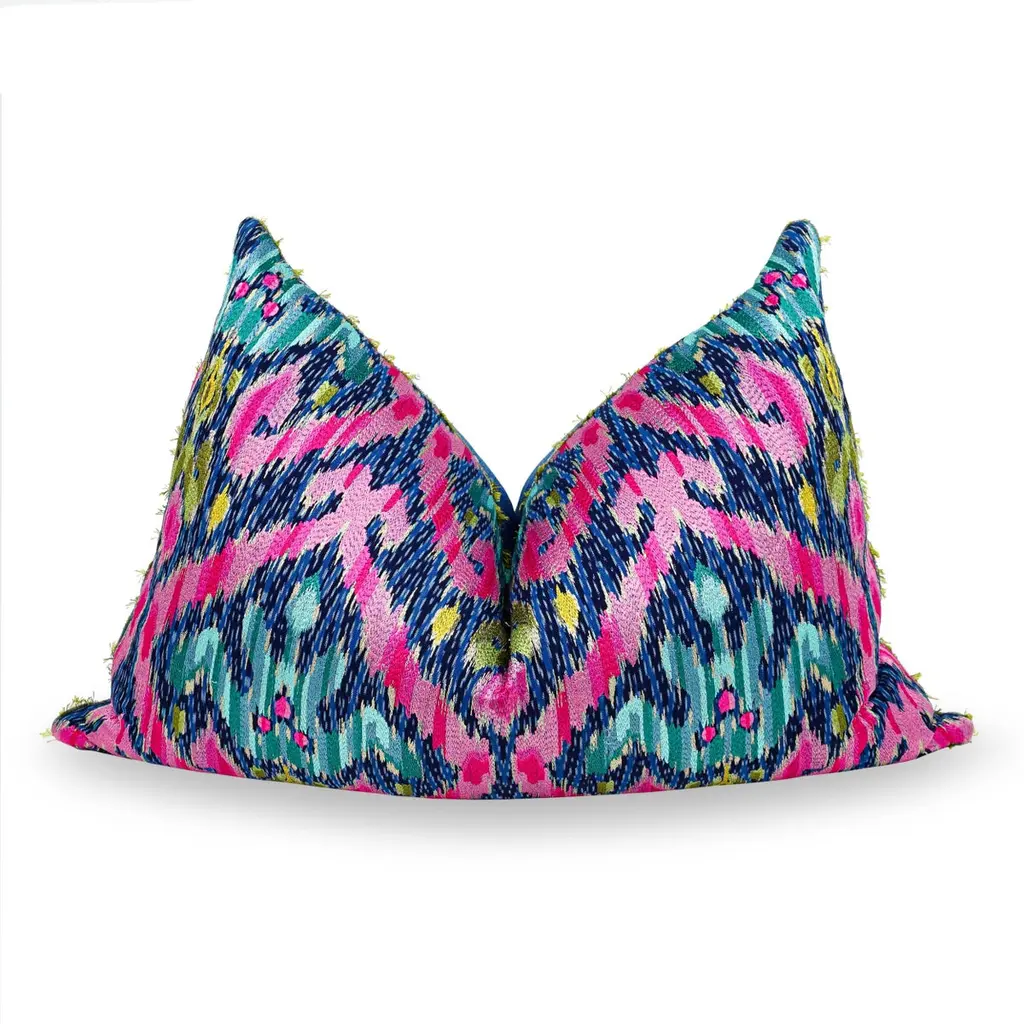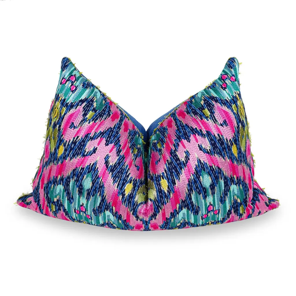 Extra Large Pillow Feather Pillow With Blue Pink Gold Damask