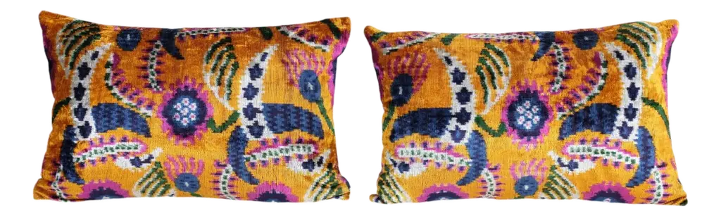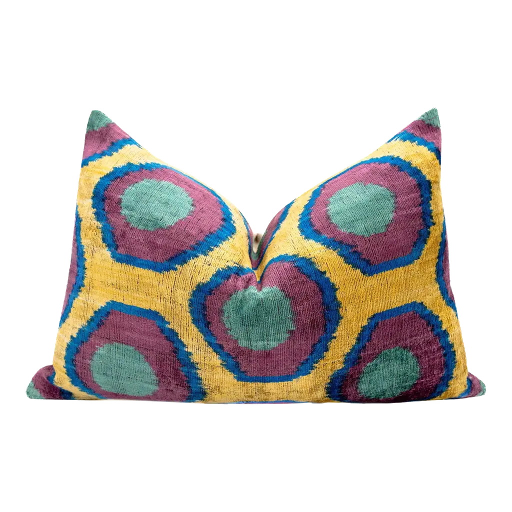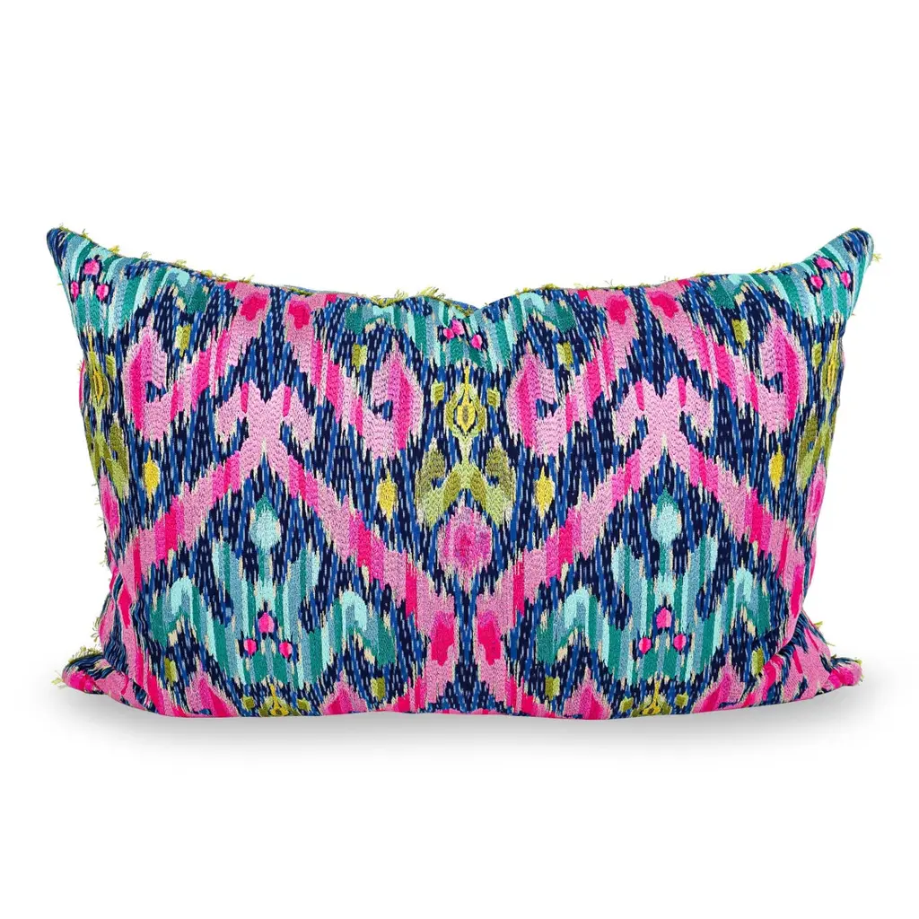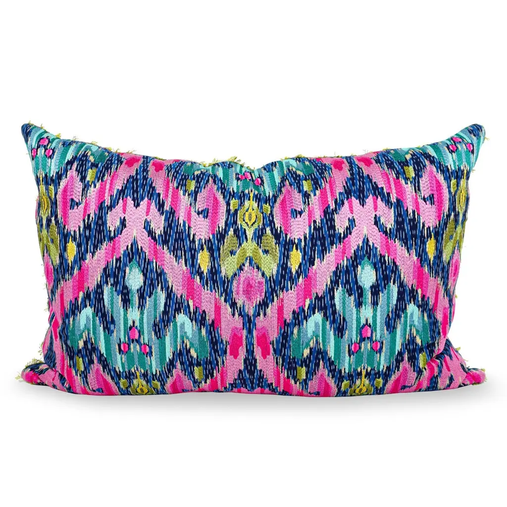 Extra Large Pillow Feather Pillow With Blue Pink Gold Damask