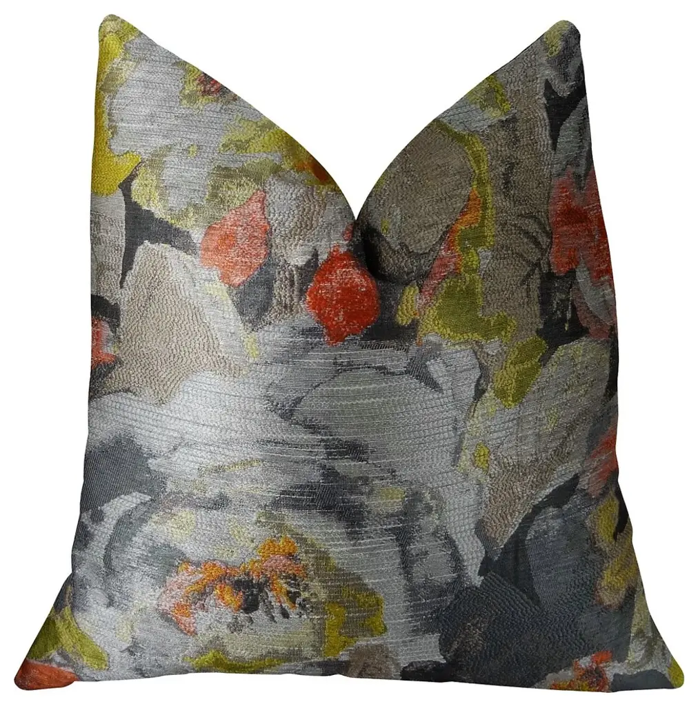 Fairy Garden Gray Yellow And Coral Handmade Luxury Pillow, 22"x22"