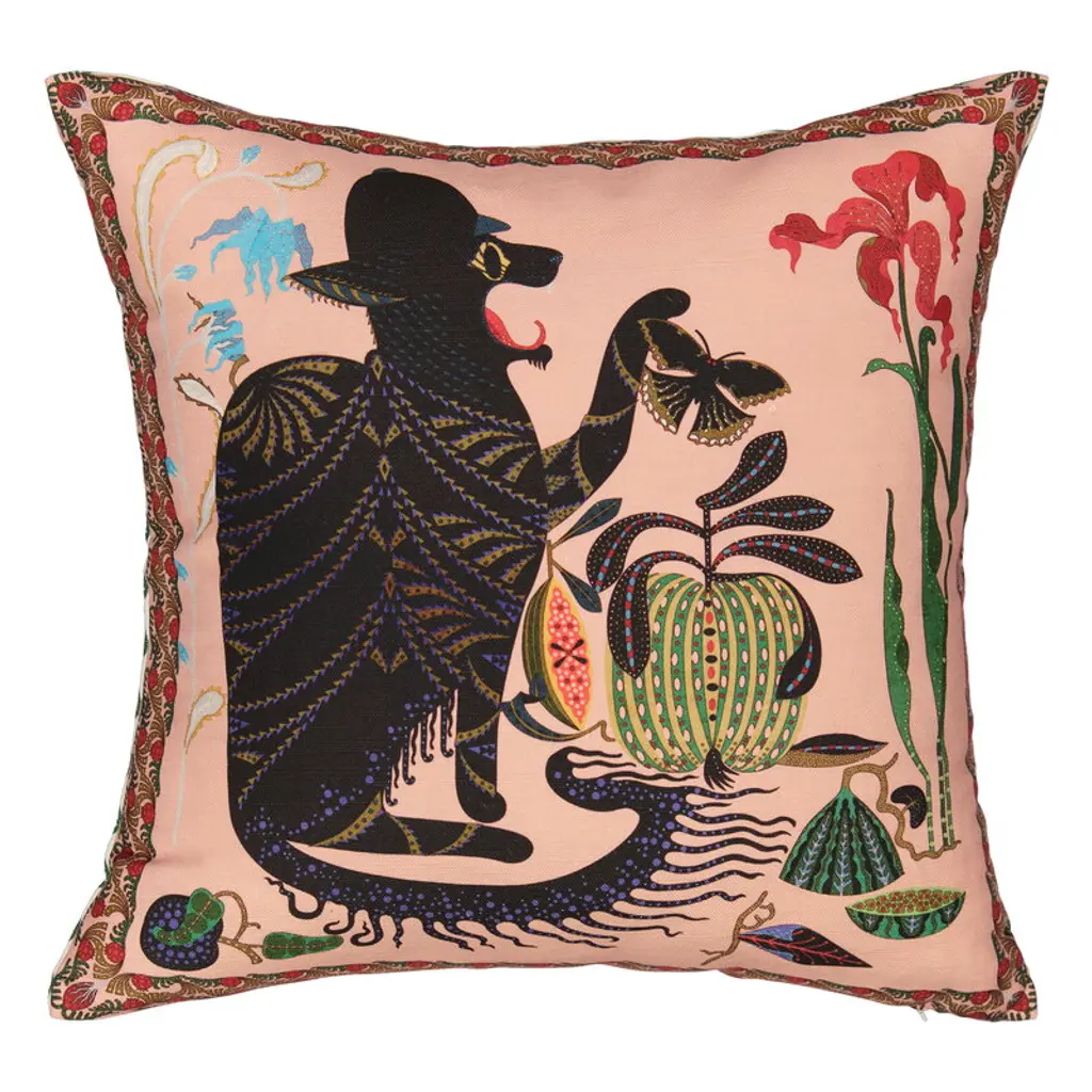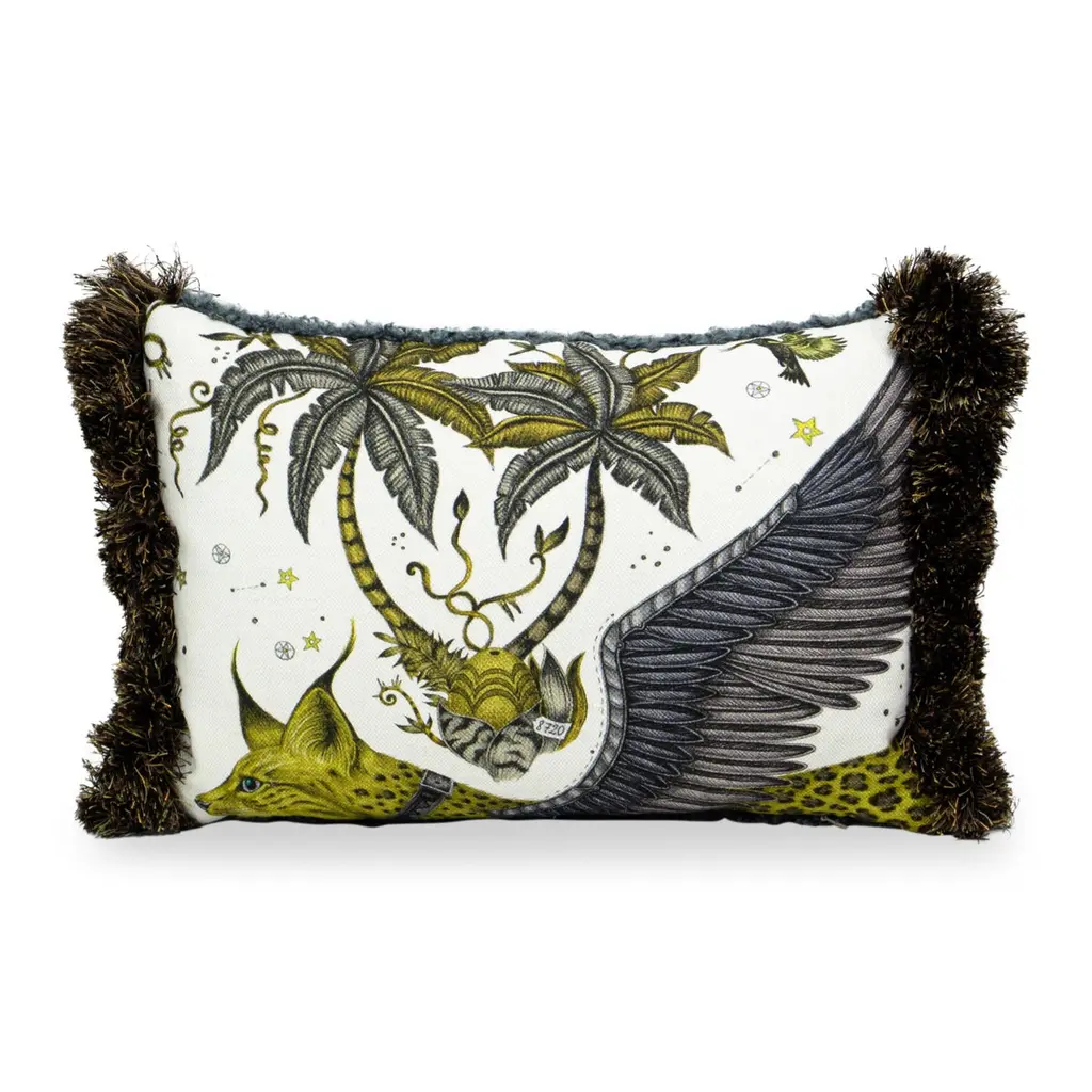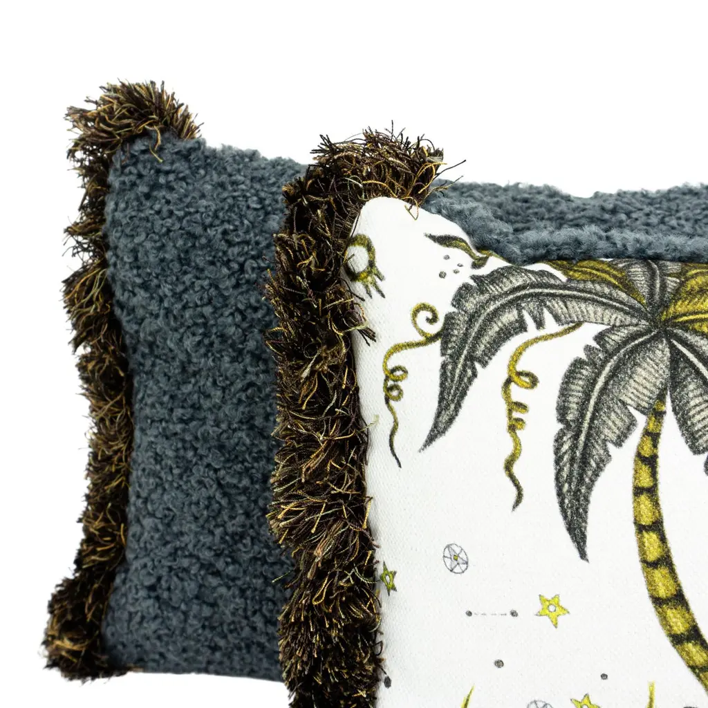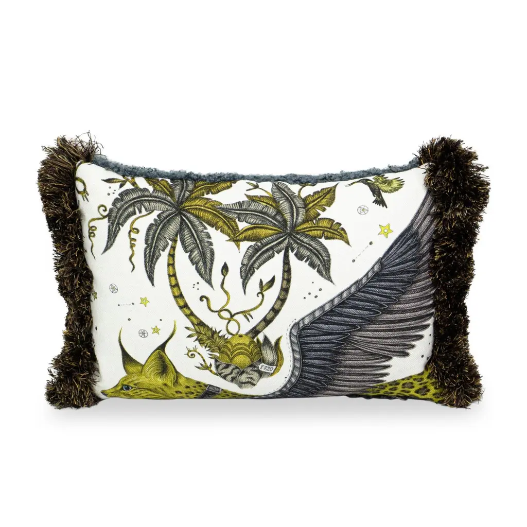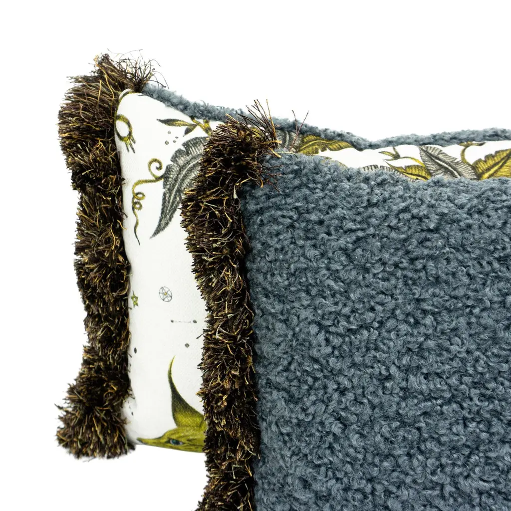 Fantastical lynx printed linen on pillow face with grey boucle on back and brush fringe trim.Measurements:Overall: 16”W x 13”HPrice As Shown: $1,225 as a pairCOM Price: $215 eachCustomization may change price.How We Work:Made to order by Connecticut-based furniture design and manufacturing company The Tailored Home. Submit your customization desires by 1stdibs messenger for a quote. After orders are placed our workshop manager creates a visual work order for your approval for quality assurance.Customization Options:Dimensions can be customized. Ask for details.The fabric shown may come in more colors. We also carry thousands of other materials and can send you samples and fabric pricing upon request. We accept your fabric for a COM fee of 5% of the cost of the piece. Welting, piping, tape or trim can be added. Different species available for pieces with exposed wood and can be painted & lacquered in any Benjamin Moore color (for additional charge) or stained in one of our stain options. Custom color matches cost $75 per sample.We accept inspiration photos of pieces you like.2021 - Made to OrderThis piece can be made as is or custom made with customer’s choice of materials and size adjustments.9-10 weeks.