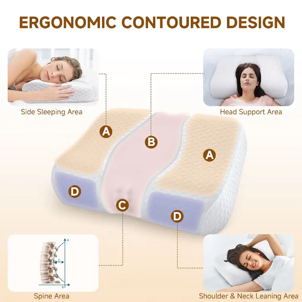 Fapo Neck Pillow Memory Foam Contour Pillow For Pain Relief Cervical Pillow For Sleeping, Ergonomic Pillow For Side Back Stomach Sleeper