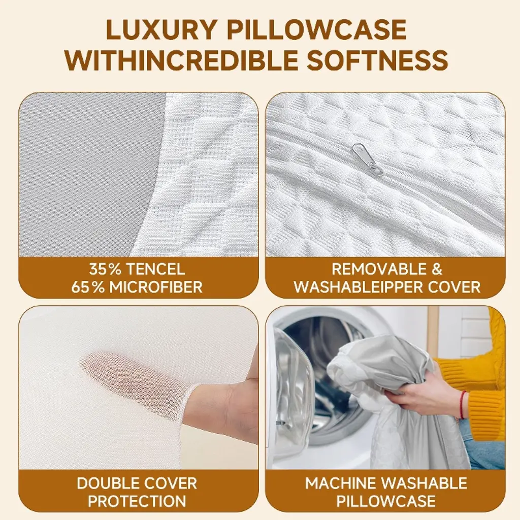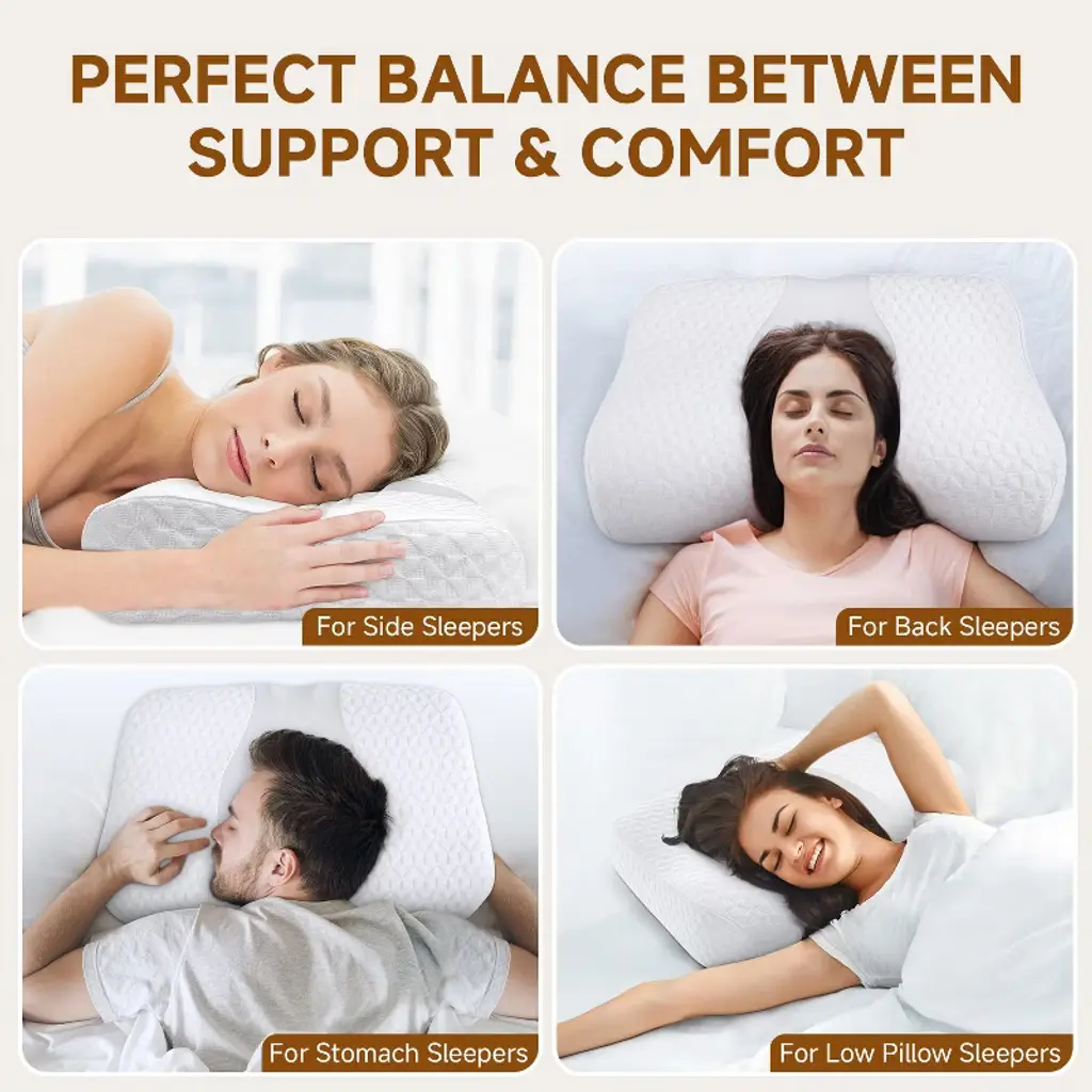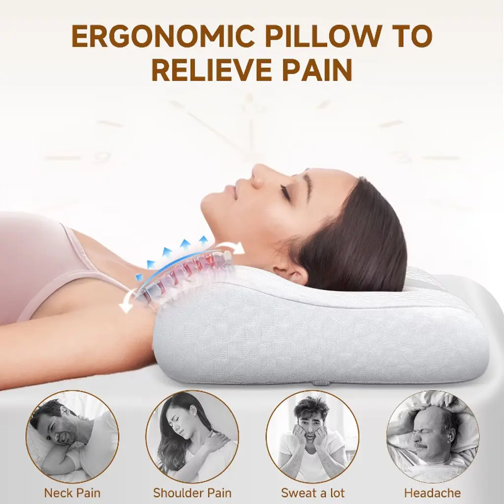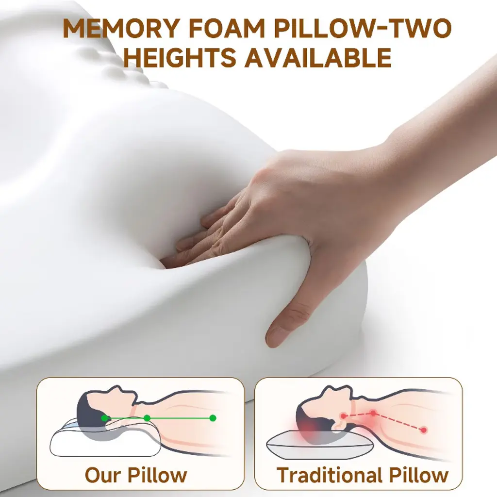 Enhance Your Sleep with Our Premium Memory Foam Pillow Our premium memory foam pillow offers unmatched comfort and support. With 1.5-second slow-rebound technology, it molds to your head and neck for personalized support. The ergonomic design alleviates neck pressure, promoting better circulation and reducing discomfort. Choose from two height options for all sleeping styles. Its breathable, removable cover keeps you cool and fresh. Machine-washable for hygiene. Ideal for gifting or self-care.
