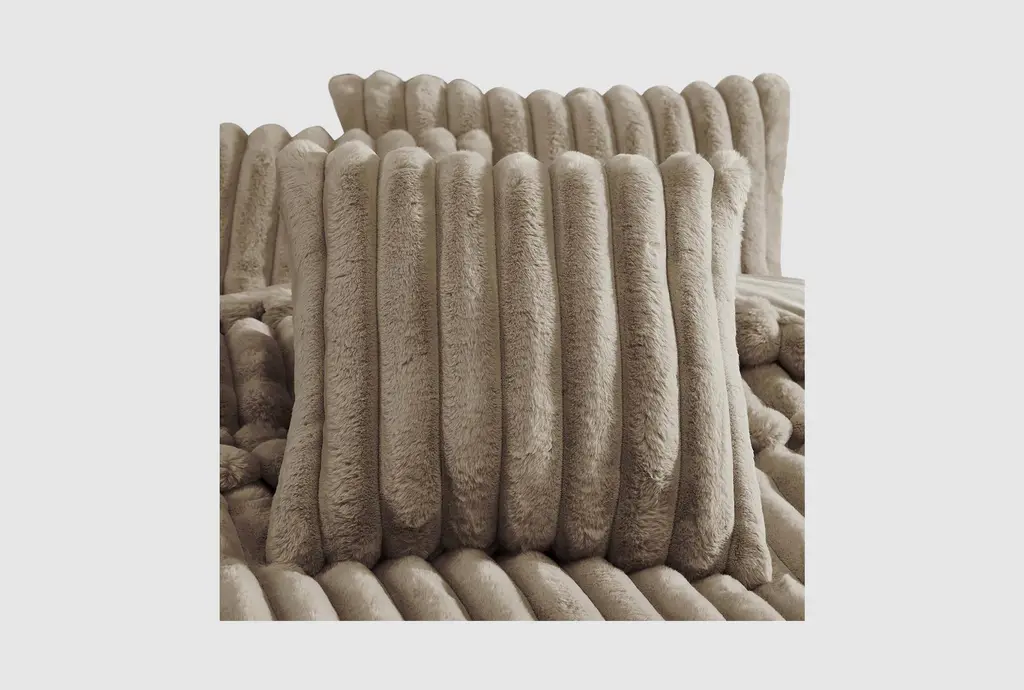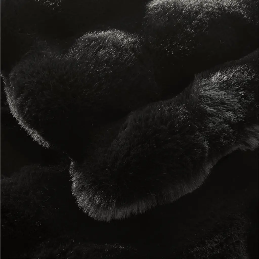 Farleigh Black Faux Fur Throw Pillow With Down-alternative Insert And Throw Blanket Set