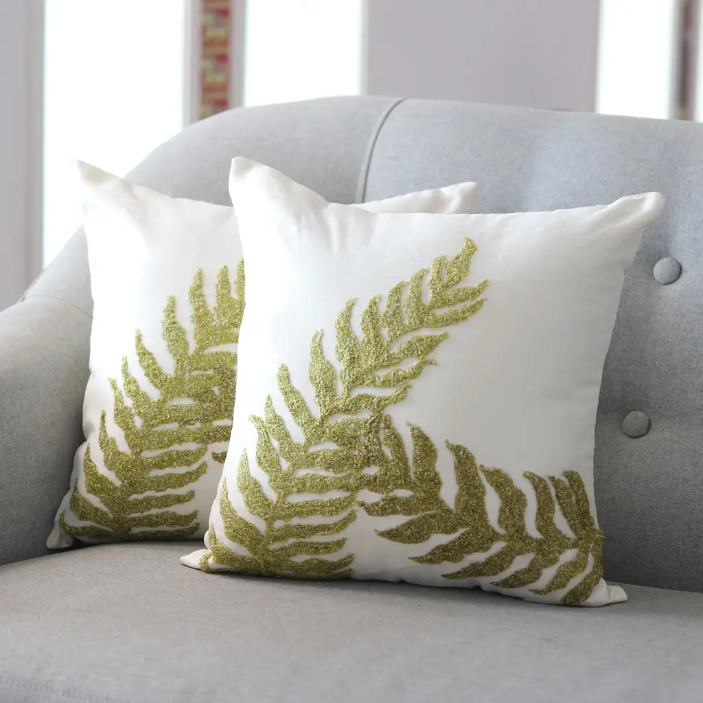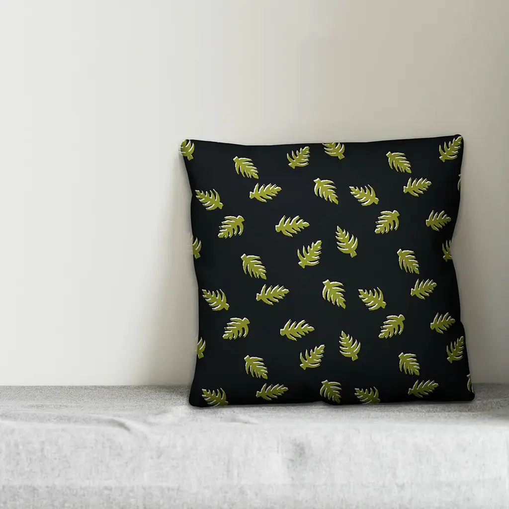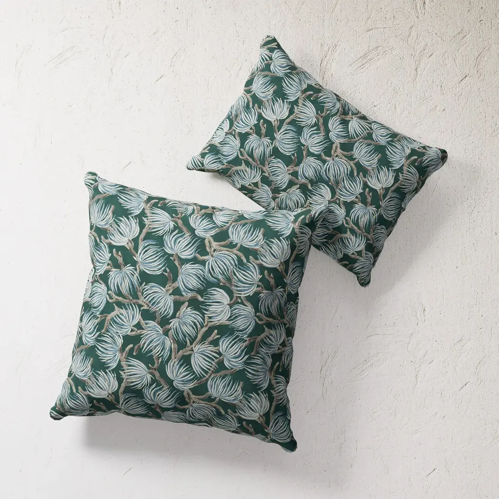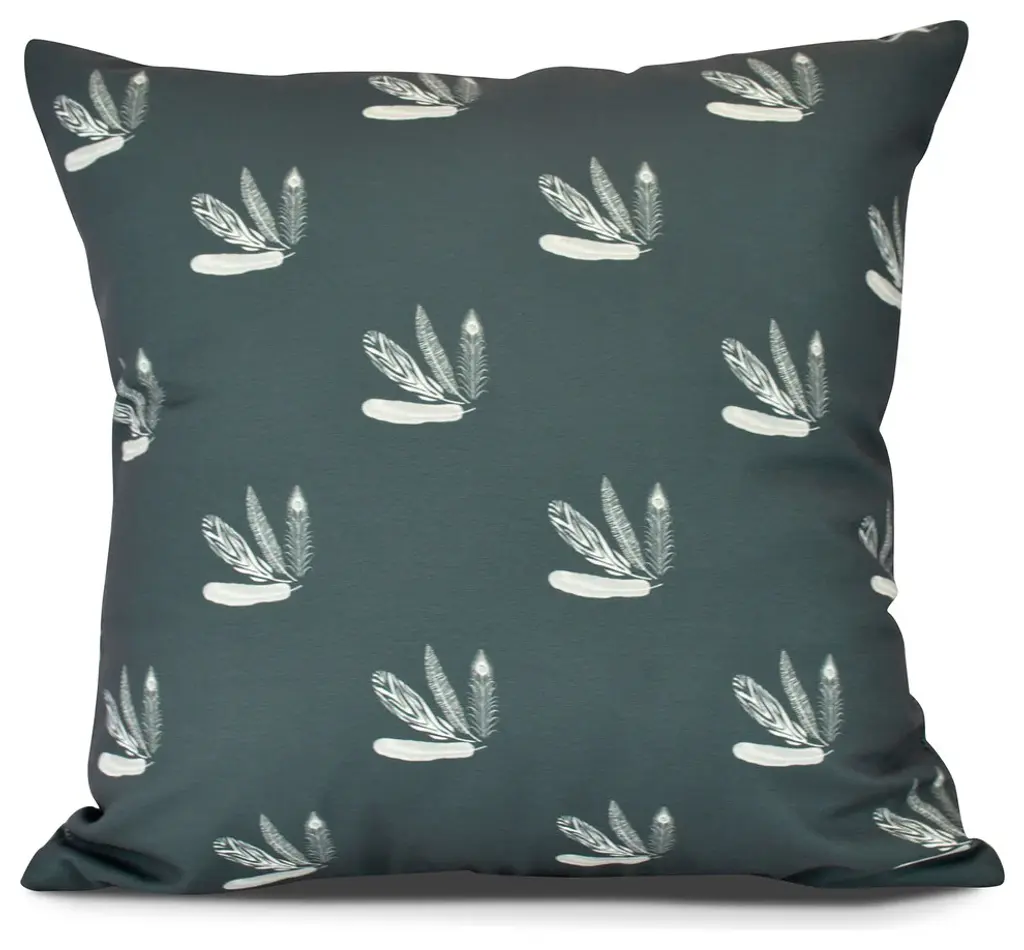 Feather Fan, Floral Print Indoor/outdoor Pillow, Dark Green,20 X 20-Inch