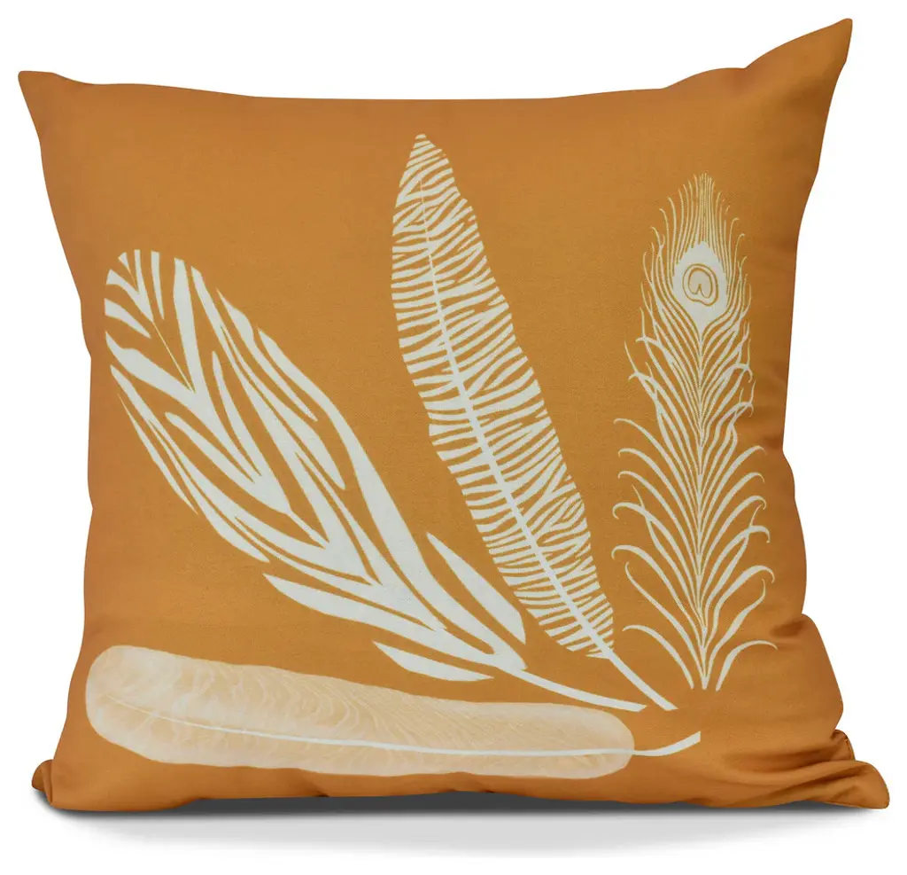 Feather Fan, Floral Print Indoor/outdoor Pillow, Gold,18 X 18-Inch