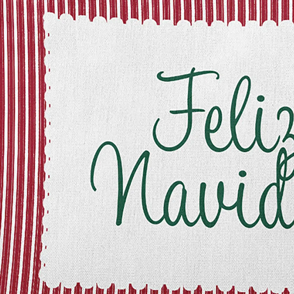 Styling your home for the holidays has never been so easy than with a Feliz Navidad Ticking Pillow from our Holiday Cheer Collection. This indoor/outdoor pillow will add style to your porch, deck or patio! This decorative pillow is printed on both sides and crafted with a soft, durable polyester exterior, and filled with down alternative for a crisp look and a comfortable sitting experience. The fabric is resistant to weather, mold, and mildew so you can accentuate your indoor or outdoor decor. It is sewn closed with a knife edge and can be easily spot cleaned or dry cleaned. You''re bound to adore the holiday atmosphere brought to your home with these stunning designs to make your home merry and bright.