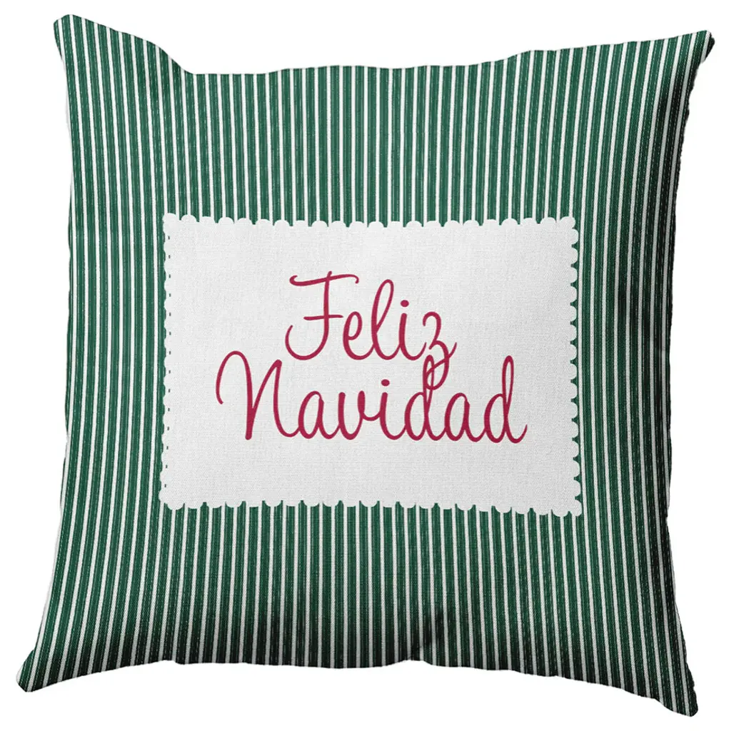 Styling your home for the holidays has never been so easy than with a Feliz Navidad Ticking Pillow from our Holiday Cheer Collection. This indoor/outdoor pillow will add style to your porch, deck or patio! This decorative pillow is printed on both sides and crafted with a soft, durable polyester exterior, and filled with down alternative for a crisp look and a comfortable sitting experience. The fabric is resistant to weather, mold, and mildew so you can accentuate your indoor or outdoor decor. It is sewn closed with a knife edge and can be easily spot cleaned or dry cleaned. You''re bound to adore the holiday atmosphere brought to your home with these stunning designs to make your home merry and bright.