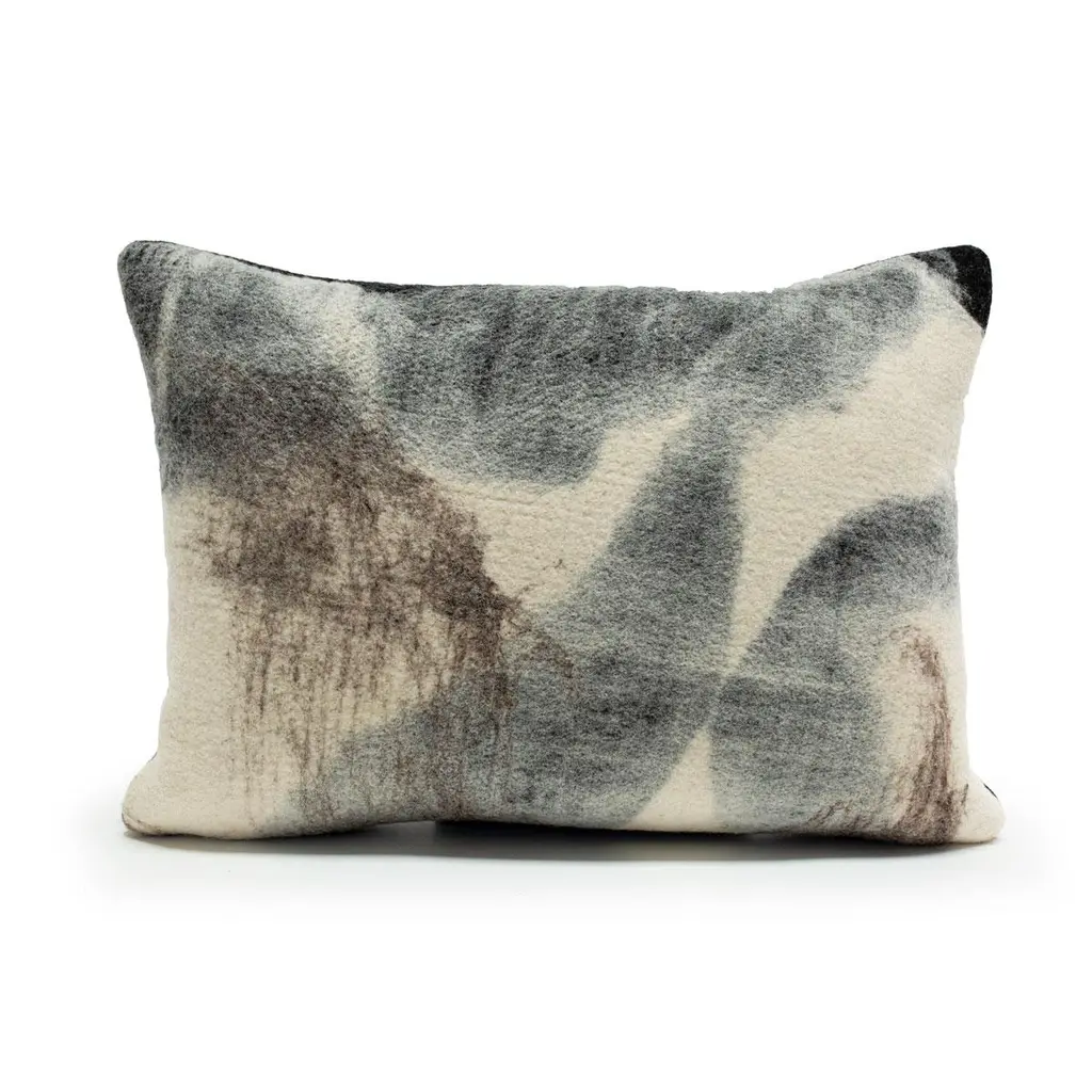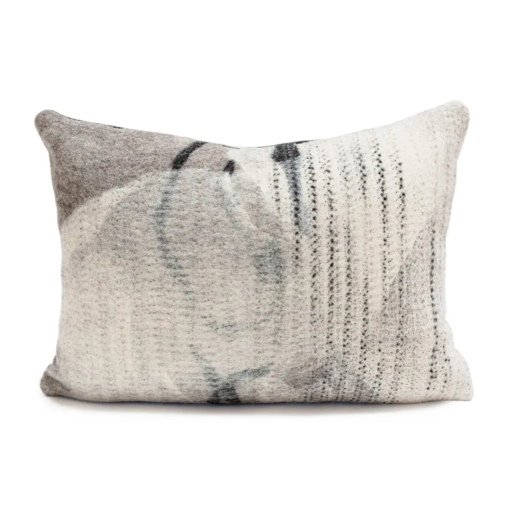 We call this new fabric "Milky Way." It's a tribute to the work of Steven Seinberg, one of our very favorite artists, whose paintings take our breath away with their lightness and beauty. He has not endorsed this, we are just true admirers.Milled by hand in JG Switzer's design workshop, and made of four types of wool: Shetland grey, Cream, local Mendocino Fibershed breeds, Merino and Black Blue Faced Leicester. Shetland sheep wool listed on the Livestock Conservancy list as an "at-risk" breed. Rich, natural brown and grey, no two alike.Dimensions: Size 16" x 22". Backed with Black Merino fabric.Pillow has a removable zipper case for cleaning. Ships with insert.
