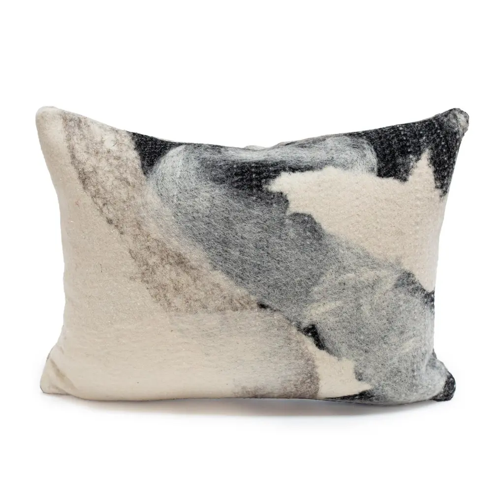 We call this new fabric "Milky Way." It's a tribute to the work of Steven Seinberg, one of our very favorite artists, whose paintings take our breath away with their lightness and beauty. He has not endorsed this, we are just true admirers.Milled by hand in JG Switzer's design workshop, and made of four types of wool: Shetland grey, Cream, local Mendocino Fibershed breeds, Merino and Black Blue Faced Leicester. Shetland sheep wool listed on the Livestock Conservancy list as an "at-risk" breed. Rich, natural brown and grey, no two alike.Dimensions: Size 16" x 22".Pillow has a removable zipper case for cleaning. Ships with insert.