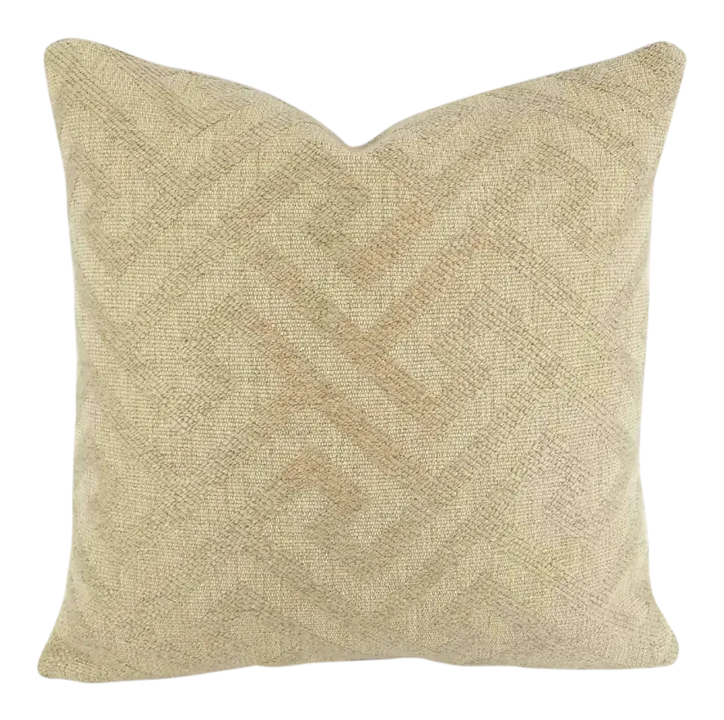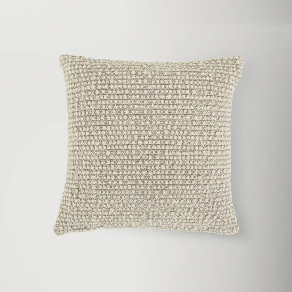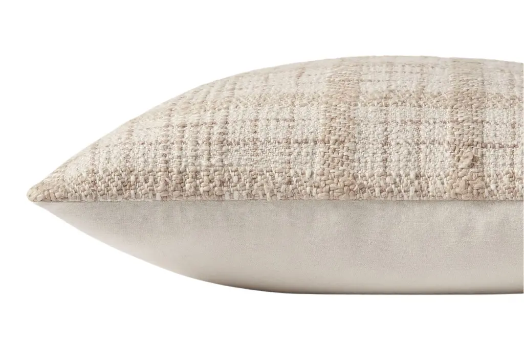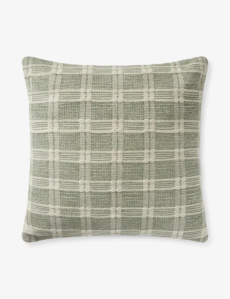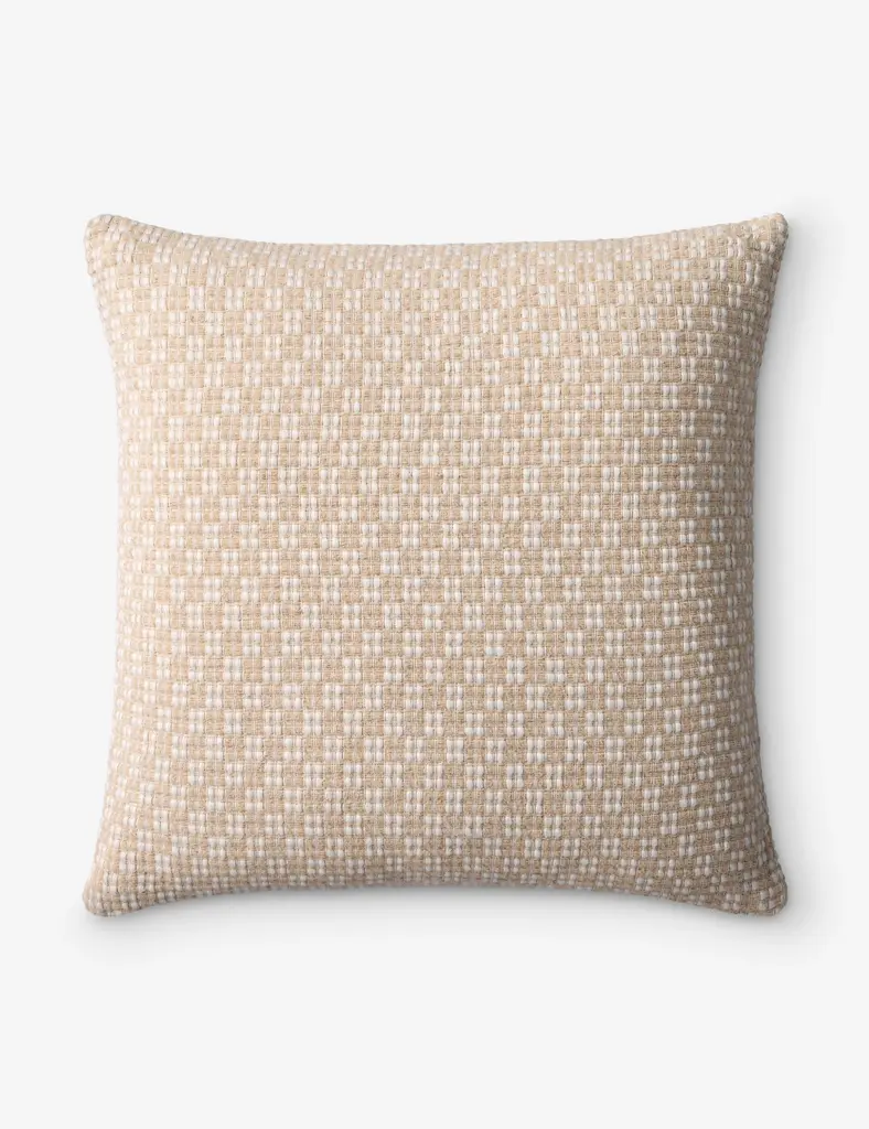 The Fern throw pillow features a timeless check pattern in a natural palette. The pillow cover is made of cotton, polyester, and rayon and measures 18" x 18", a standard size to style in living rooms and bedrooms.