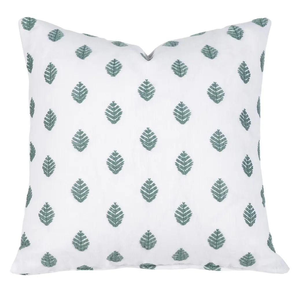 Fernie Block Print Leaf Linen Pillow