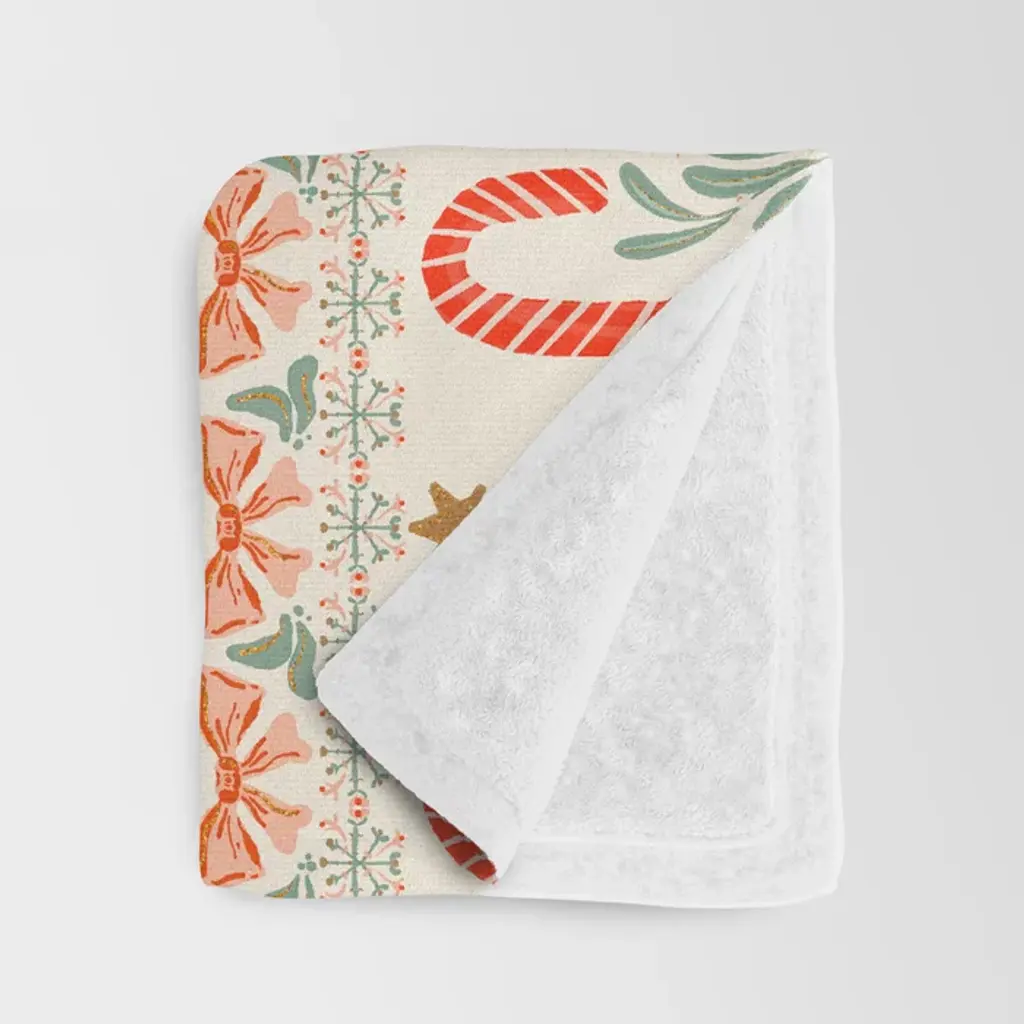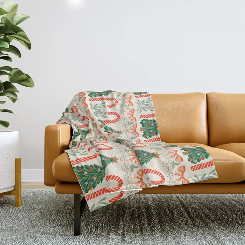Festive Christmas Elements Candy Cane Tree And Bows Holiday Design Throw Blanket