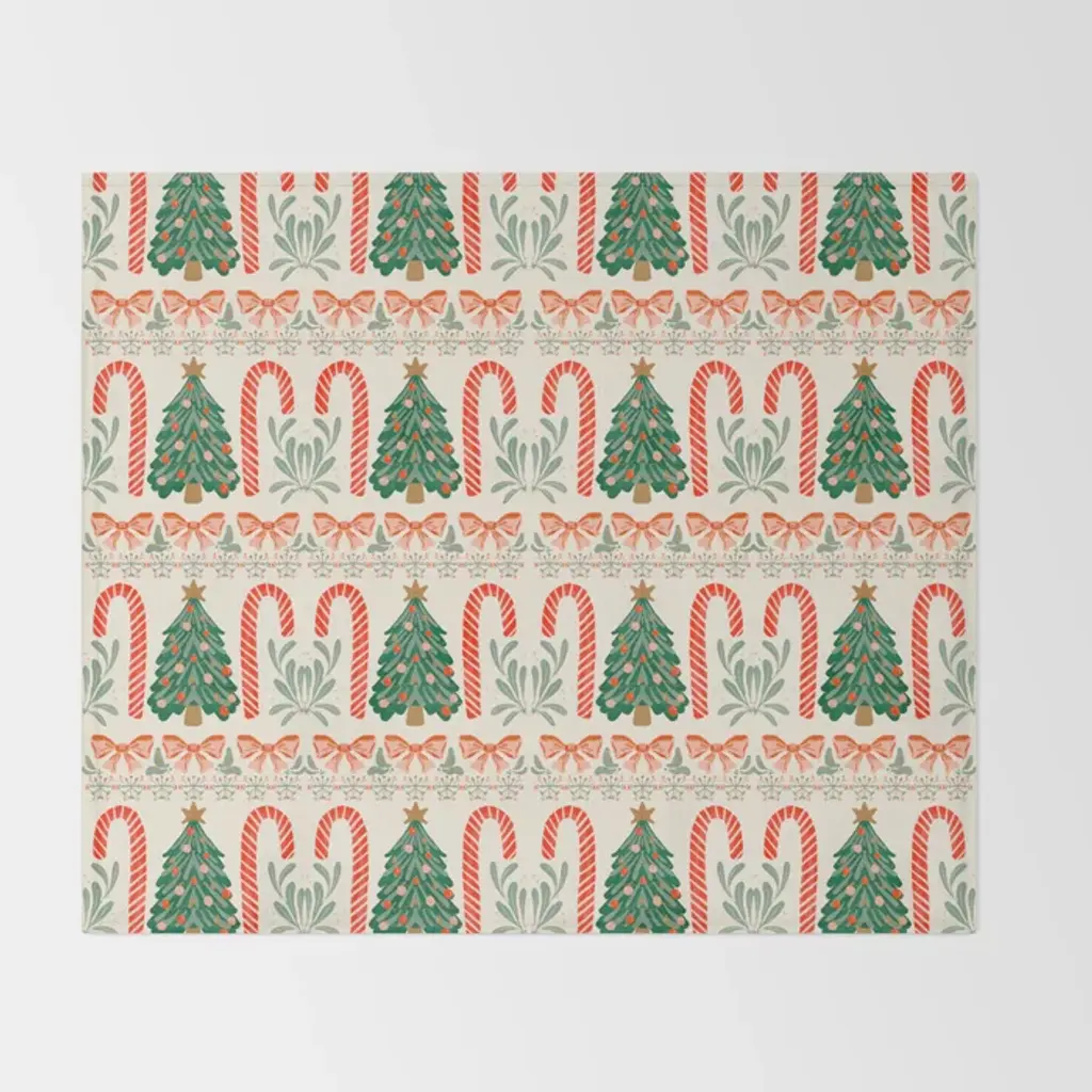 Festive Christmas Elements Candy Cane Tree And Bows Holiday Design Throw Blanket
