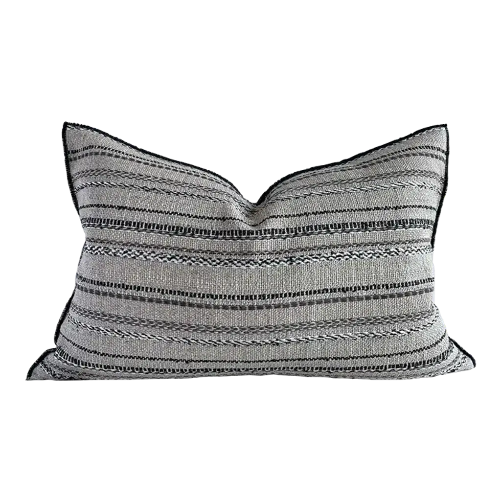 Our custom long body pillow in authentic tribal hand-spun organic raw wool in black & white color-way. Paired with our luxe premium-weight pure linen on reverse side. Plushly filled Ultra-Plump feather-and-down insert, invisible zipper closure. Full cotton inner-lining. Impeccably created by Fragments Identity in sunny California!
