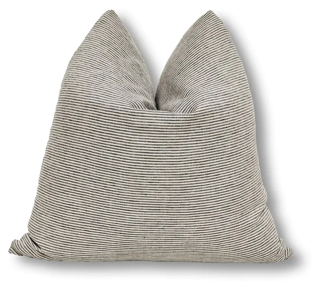 Beautiful hand cut-and-sewn large pillow in solid ultra-luxe heavy textural Italian loomed rolled textural silk textile. Shown in variegated natural neutral tone's. 70 ounce Ultra-Plump down-and-feather insert, invisible zipper closure. Fully muslin lined. Impeccably created by Fragments Identity in California.
