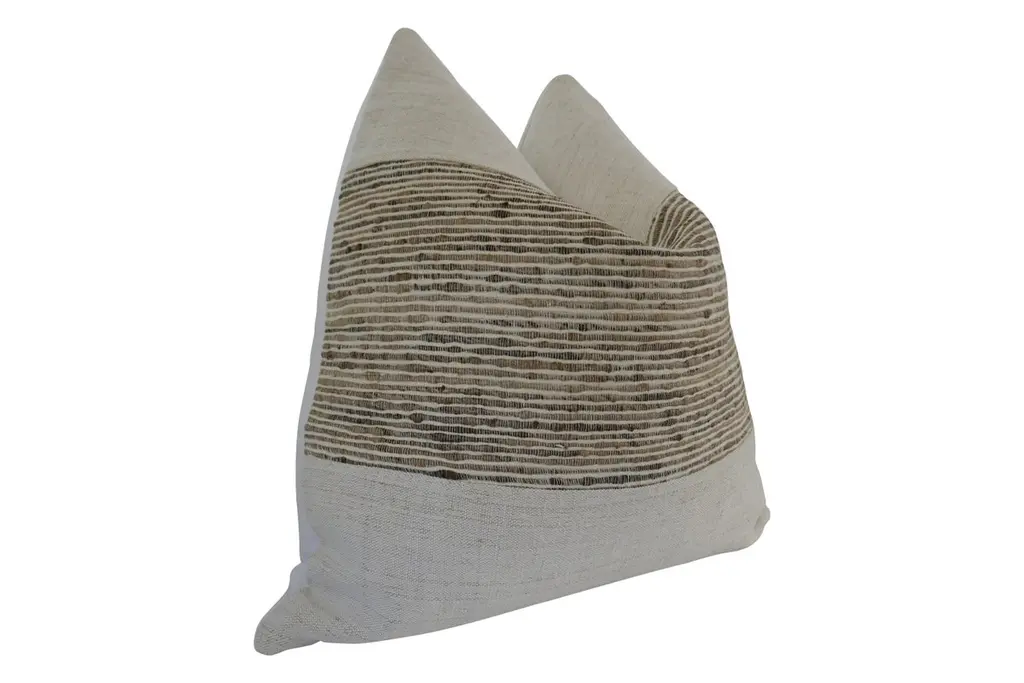 Fi Vintage French Hand-Spun Linen & Italian Rolled Silk Pillow / 24"x24"
