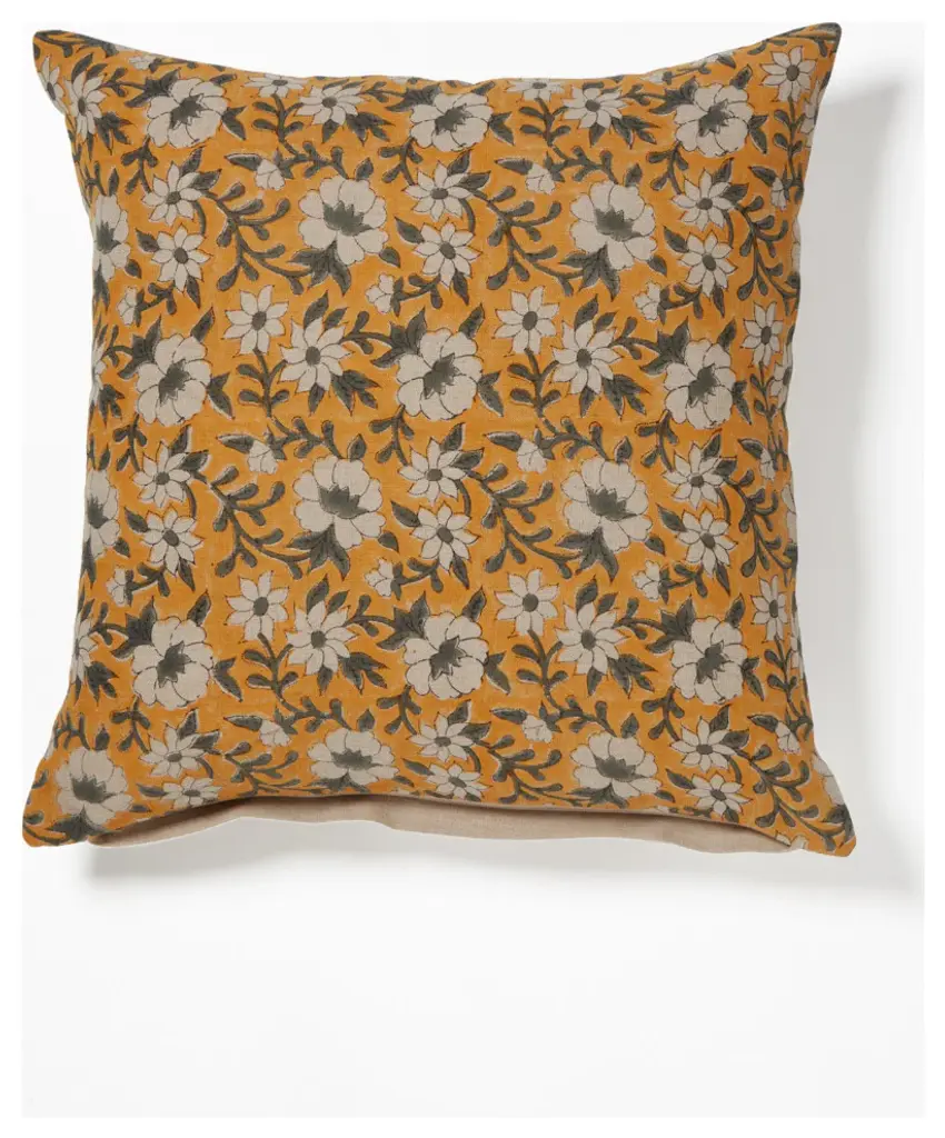 Bring home the sunny fields of Arles that inspired Van Gogh''s sunflower paintings with this hand block pillow on linen fabric. Knife edge. Roselli Trading Company''s accessories, are designed, and made exclusively for us. Purchasing a Roselli Trading Company product brings a genuine experience of staying at a five-star luxury hotel into your home. Please note that some of the images may depict other pillows (purchased separately) that match with the pillow for purchase.