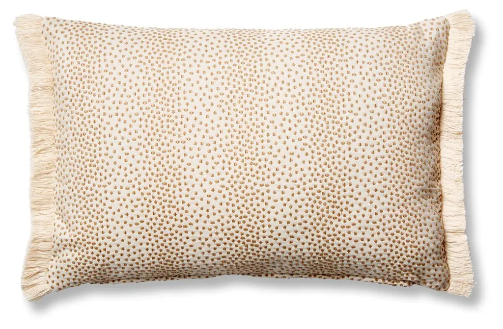 Charming, tactile, and thoroughly refined, the Fleur pillow features an allover field of stitched flowers with hand-knotted centers. The raised embroidery adds depth and texture to the softly neutral palette. This throw pillow adds a chic touch to any sofa, bed, or lounge chair.