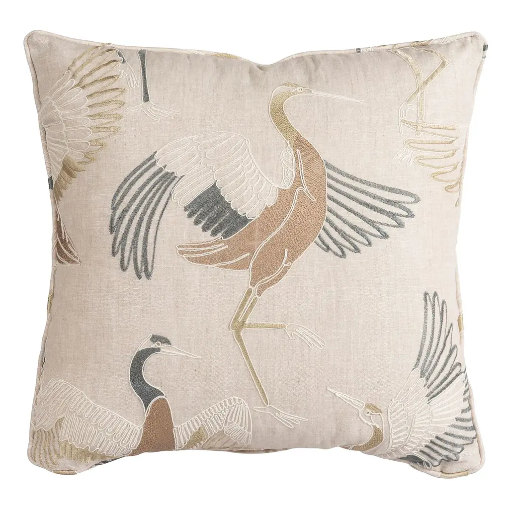 Featuring fabric by Cloth & Co.: Dress up a favorite sofa or chair with these pillows, made from linen-blend fabric with an Eastern-inspired crane print in soft neutral hues. Insert included.