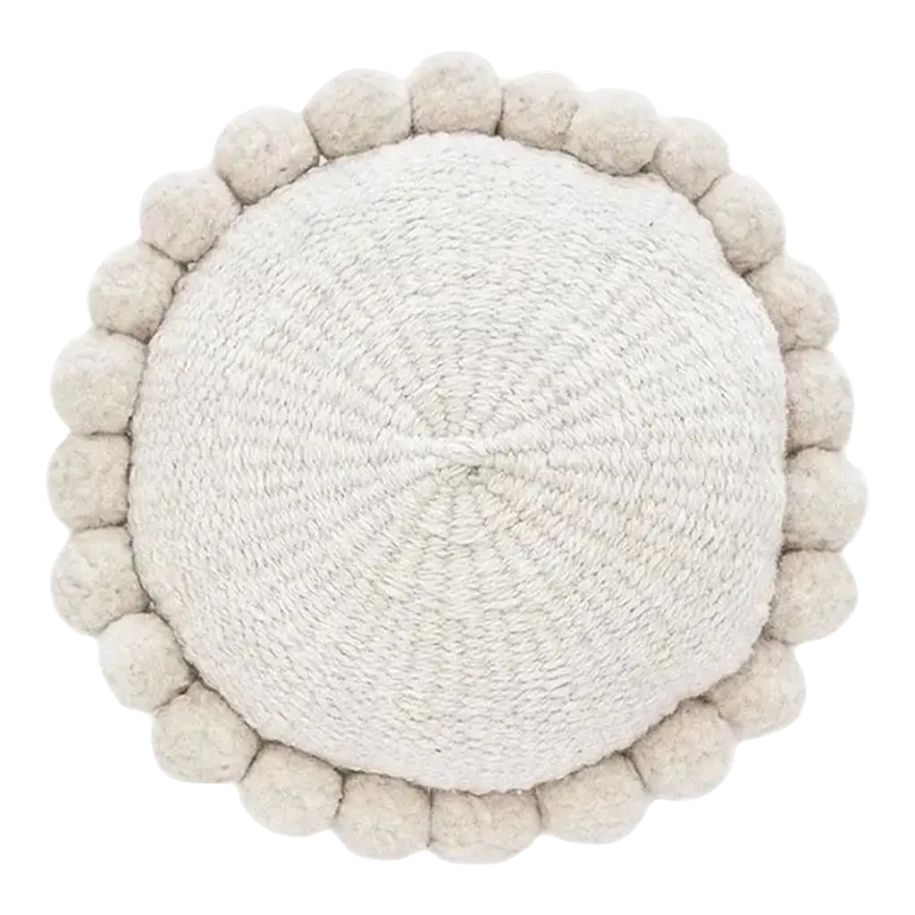 This Floki square accent pillow is a cozy and charming piece to add interest to your sofa, chair, or bed! Skilled artisans carefully handcraft this pillow and it features a unique woven texture and joyful pom poms.