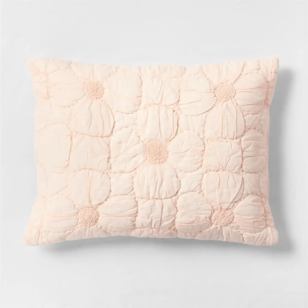 Gathered and puckered organic cotton voile in the shape of flowers gives our Flora pillow irresistible texture. We love the way the monochromatic palette in the palest of blues keeps the look modernand keeps all the attention on the intriguing dimension of the petals. A fresh addition to any bedroom, Flora makes an especially fabulous finishing touch to a dorm bed. Our exclusive throw pillow includes your choice of a plush feather-down or lofty down-alternative insert.
