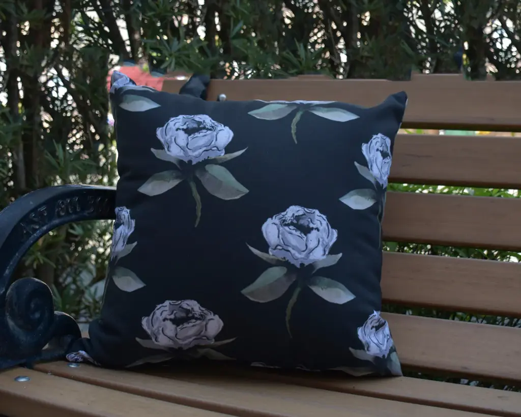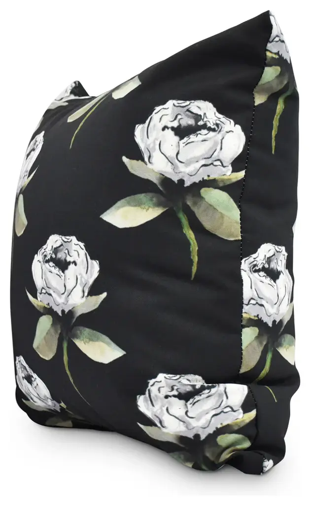 Floral Bunch Black Floral Print Decorative Outdoor Throw Pillow, 20"