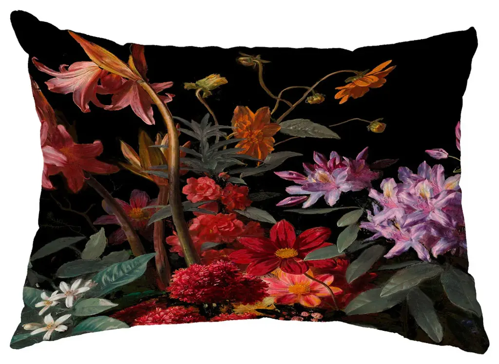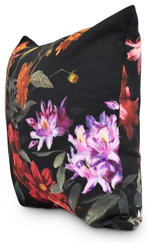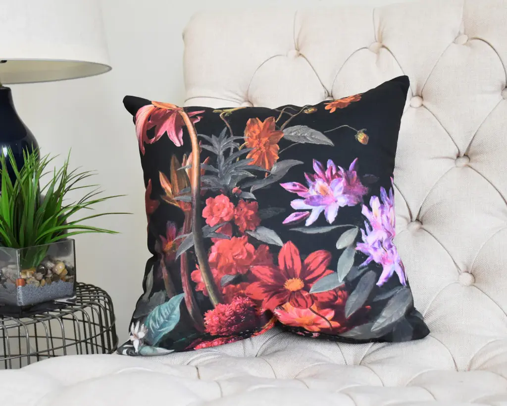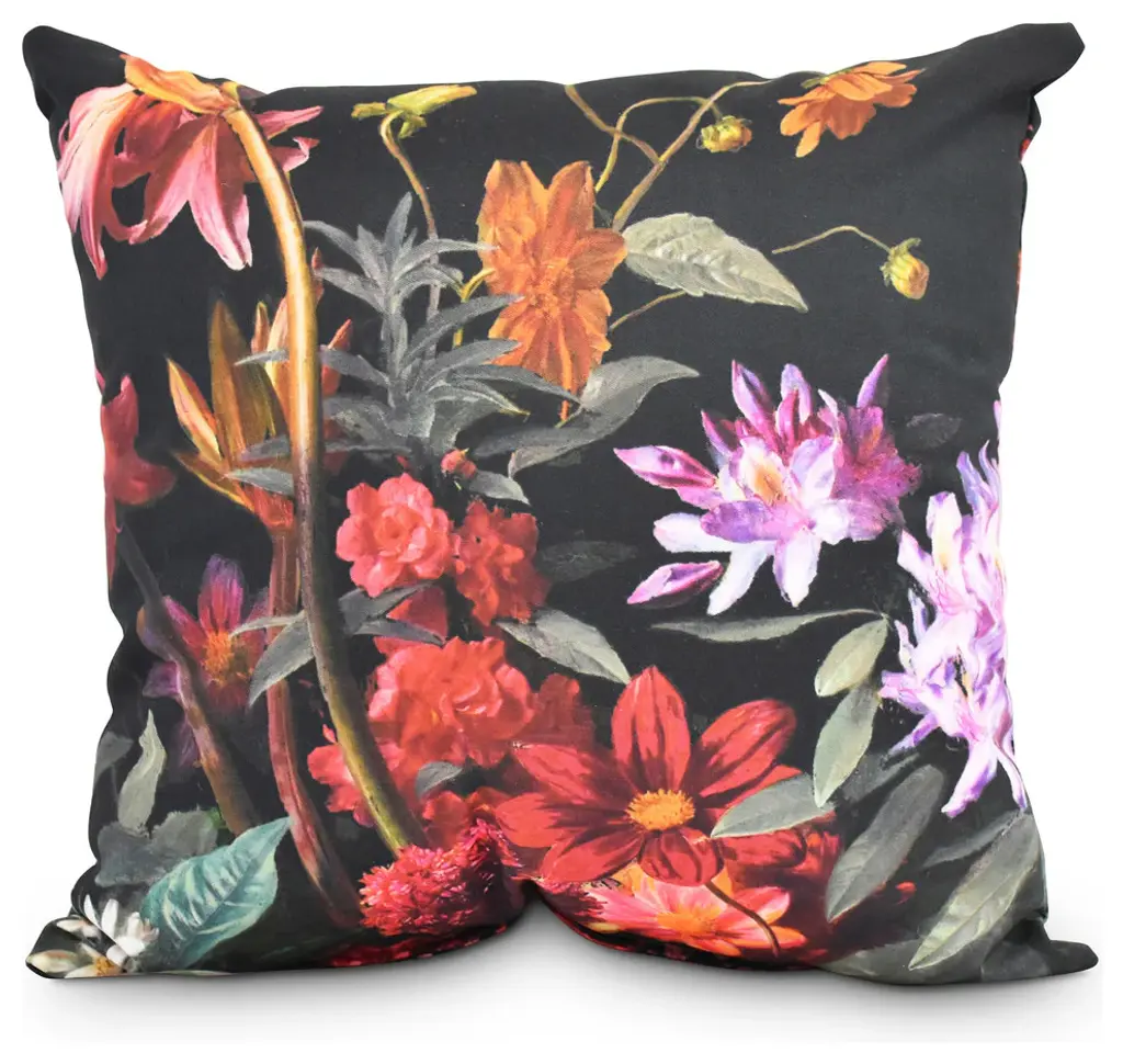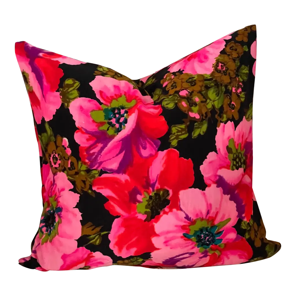 Floral Craze 26" Black Floral Print Decorative Throw Pillow