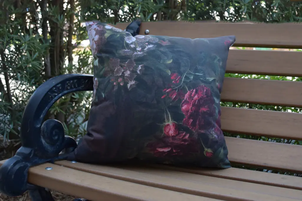 Floral Fancy Red Floral Print Decorative Outdoor Throw Pillow, 18"