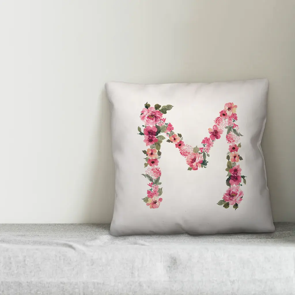 Floral Pattern Monogram M 18x18 Indoor/outdoor Pillow