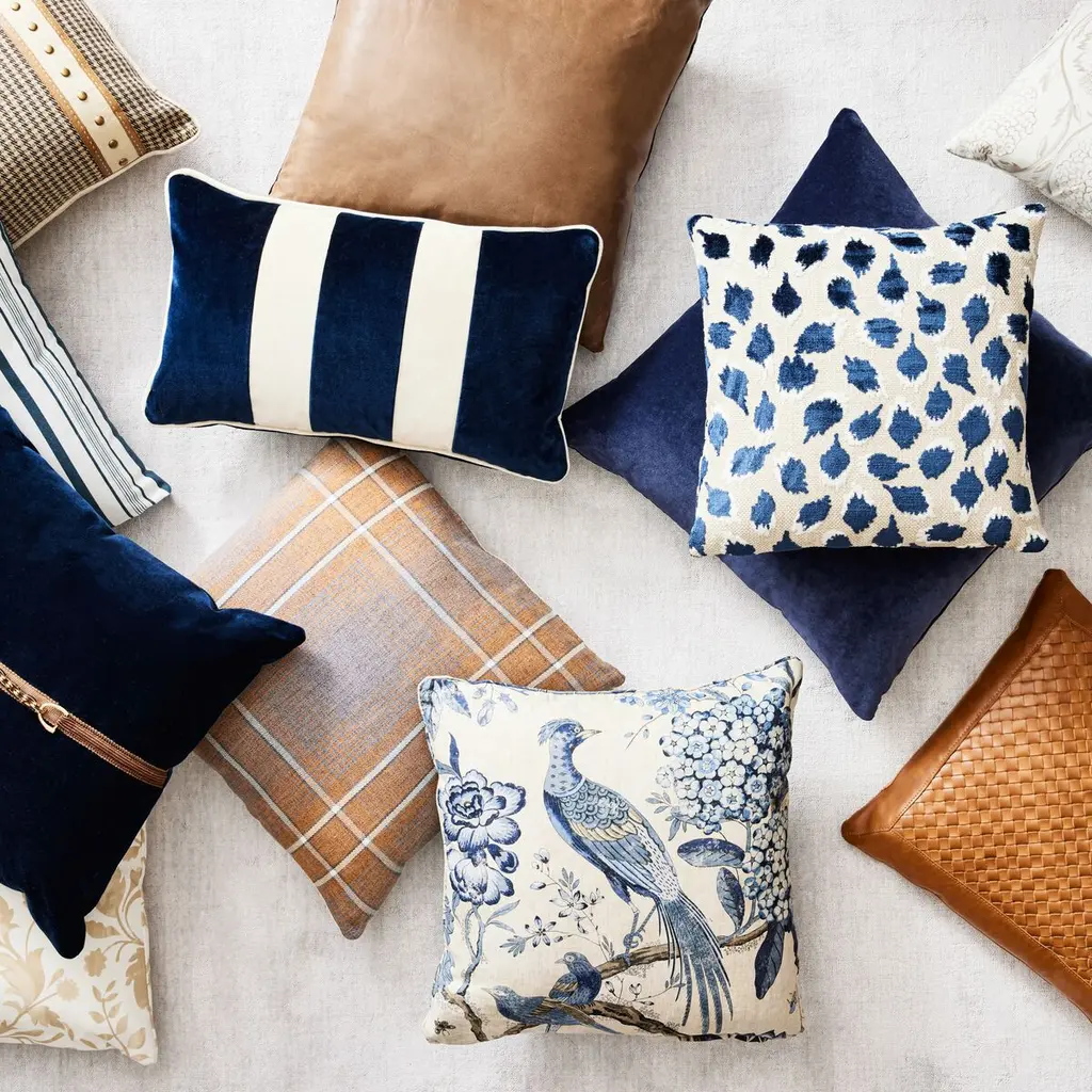 Designed by us and available only at One Kings Lane: Printed with a beautifully detailed pheasant design, this linen pillow dresses up any sofa with color and pattern. Features a solid linen back. A hypoallergenic insert is included. Made in the USA.