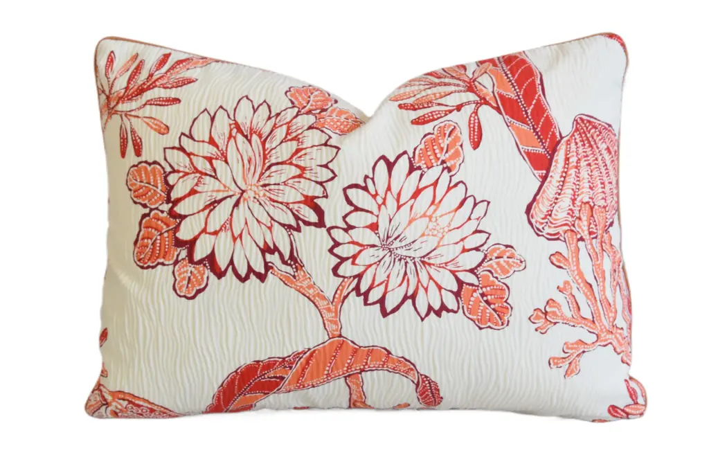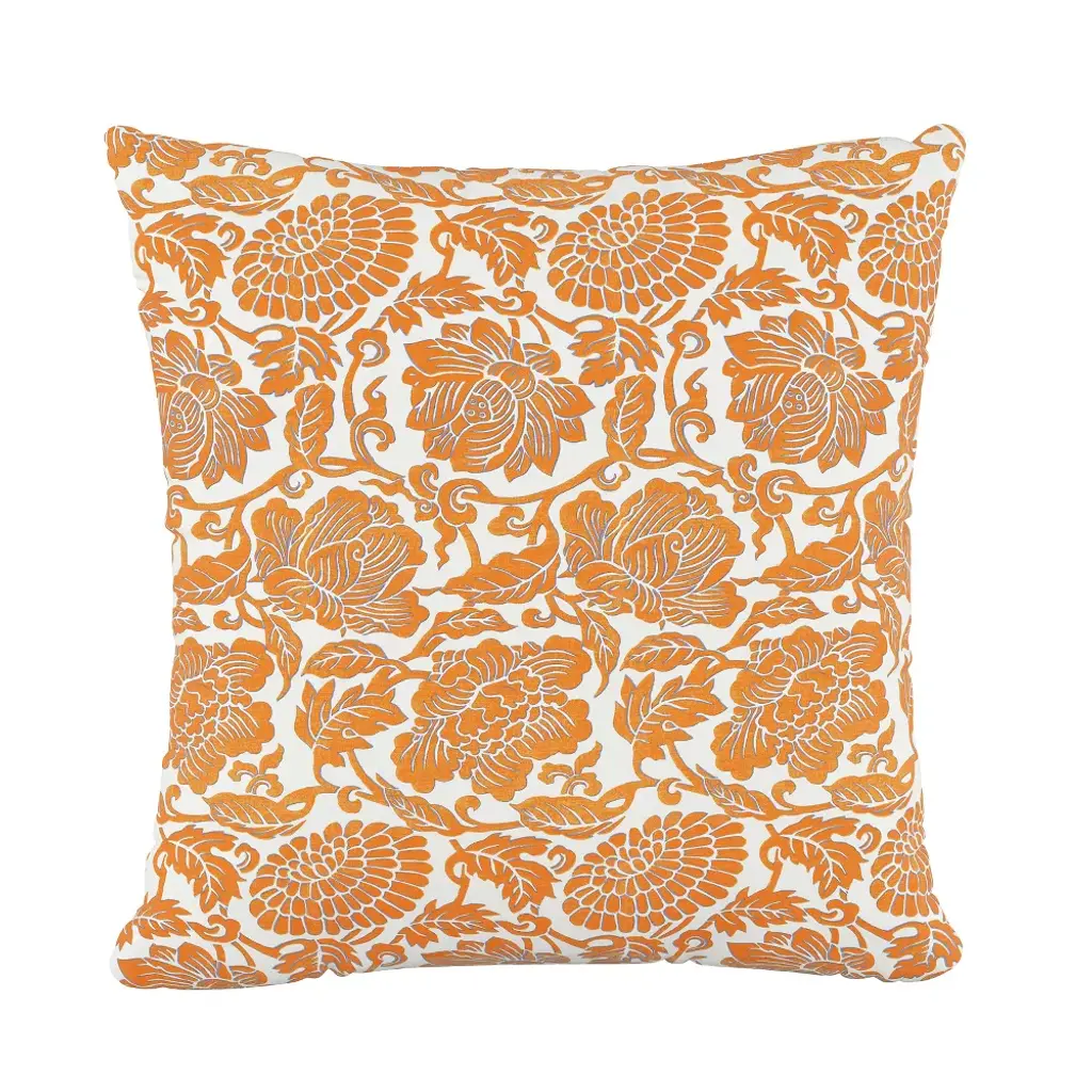 Floral Square Throw Pillow Orange - Skyline Furniture: Vintage Style, Linen & Cotton Blend, Zipper Closure