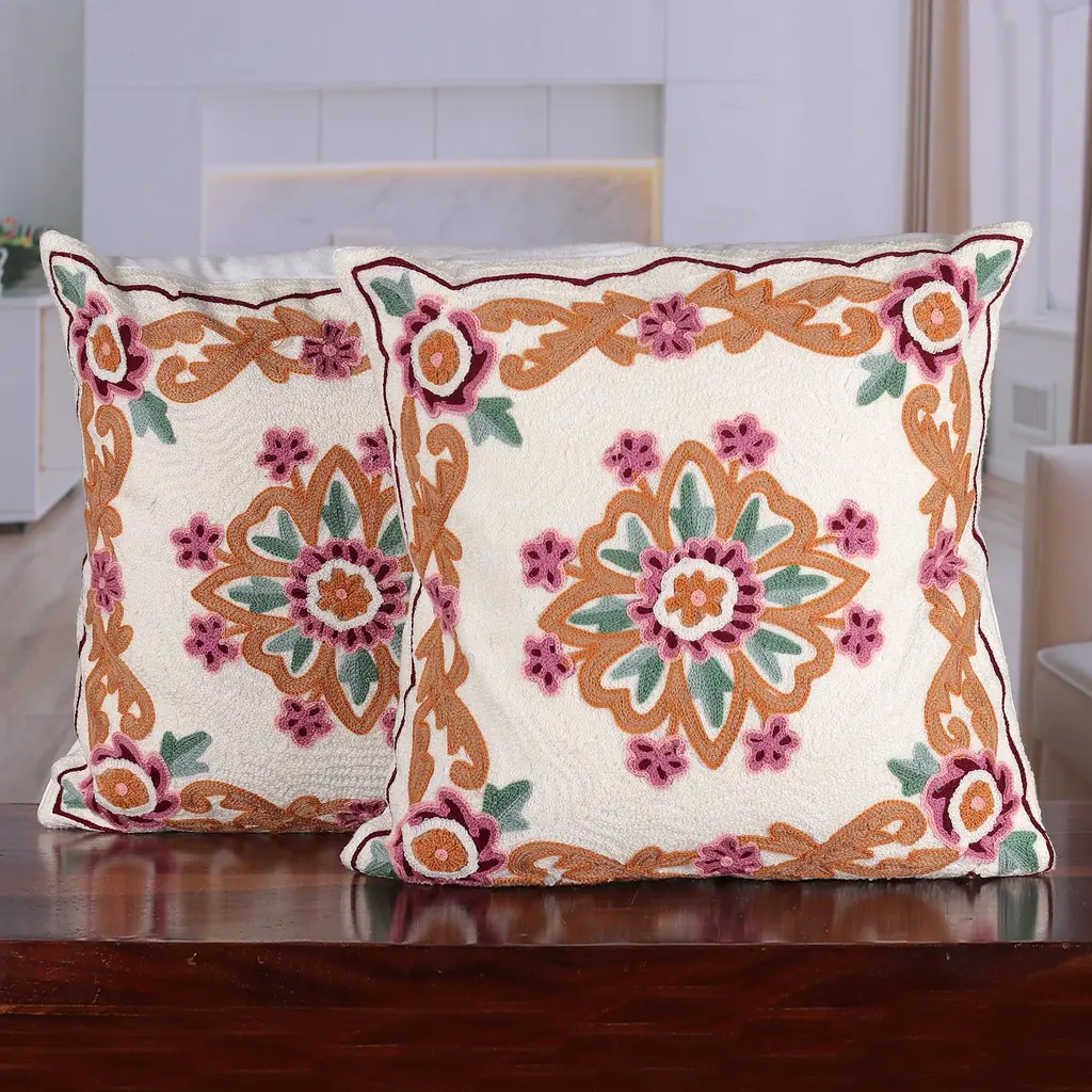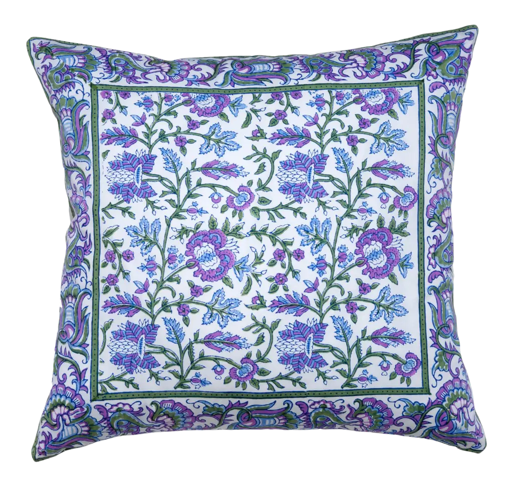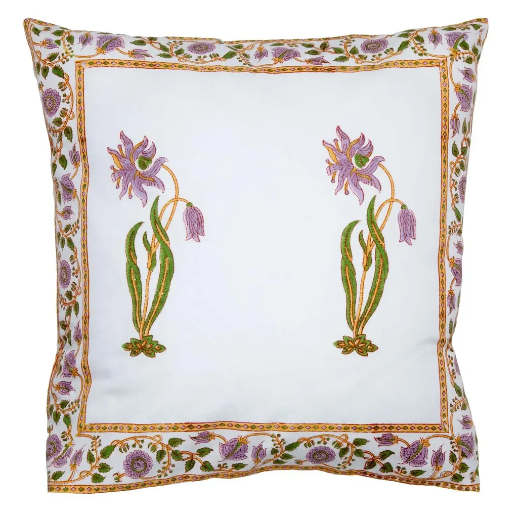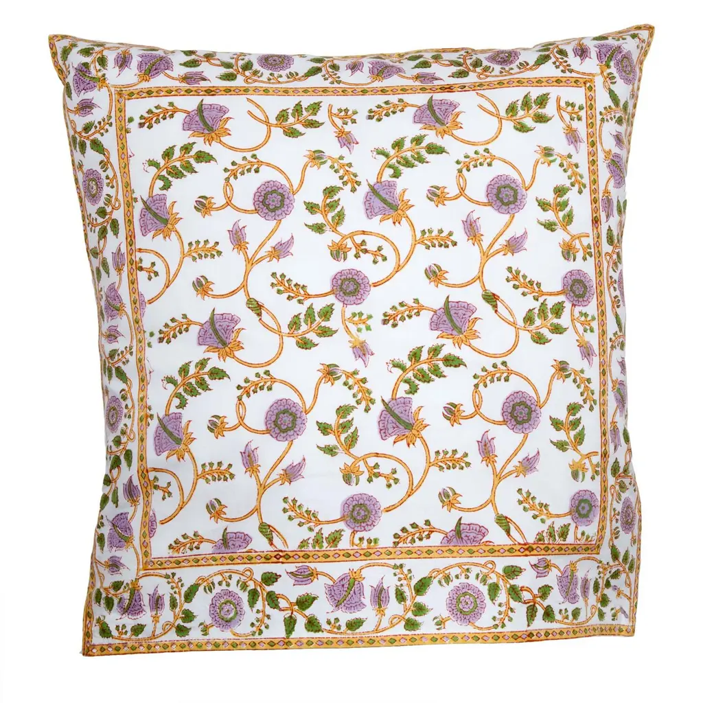 The Florence-Gina design draws upon European influences. A graceful Florence flower motif is printed on one side, complemented by the Gina floral vine pattern on the reverse. Simply flip the pillow whenever you desire a change. Ancient printing methods and delightful traditional designs on crisp white cotton make our block printed pillow covers elegantly stylish. The handcrafted nature of this time-honored printing technique gives rise to slight variations in color and pattern enhancing their uniqueness and appeal. Add a subtle splash of color to a room or highlight your sofa or bed with an eclectic collection of these classic Indian pillow covers. Materials: 300-thread count cotton. Product Features: Finished with an envelope closure on the edge for easy reversibility. Decorative Pillowcase/Pillow Case - cover only. Insert not included. Crafts: Hand block printing. DIMENSIONS Pillow Cover: 18" x 18" square CARE & MAINTENANCE Protect from direct sunlight when using. Hand or machine wash separately in cold water on gentle cycle. Use a mild detergent without any bleach or fabric softeners. Do not soak or wring the fabrics. Scrub gently if needed. Tumble dry on low heat or air dry in the shade. Iron at medium setting. Test stain remover on a small area before applying.