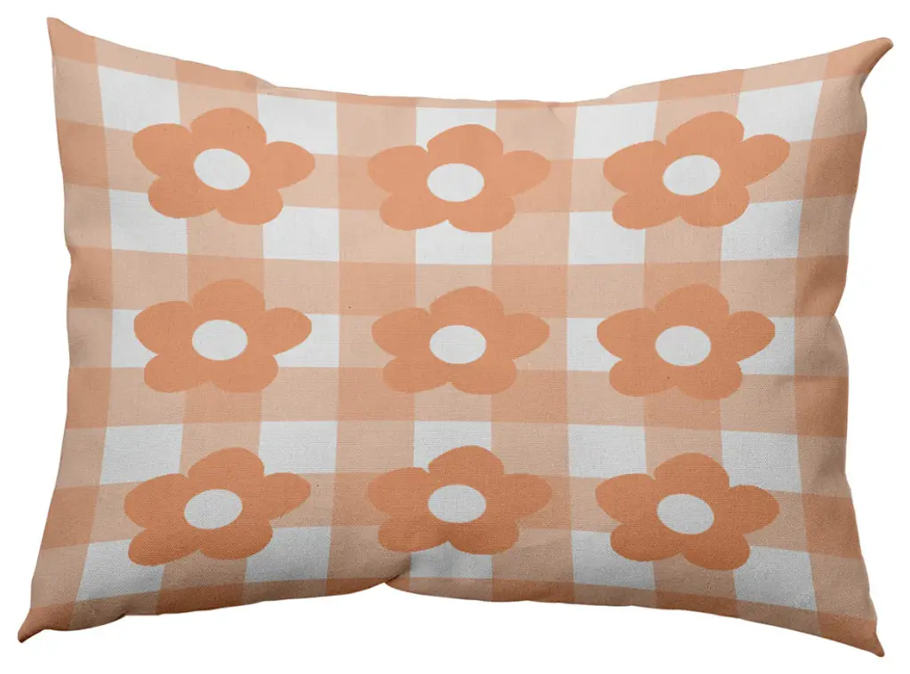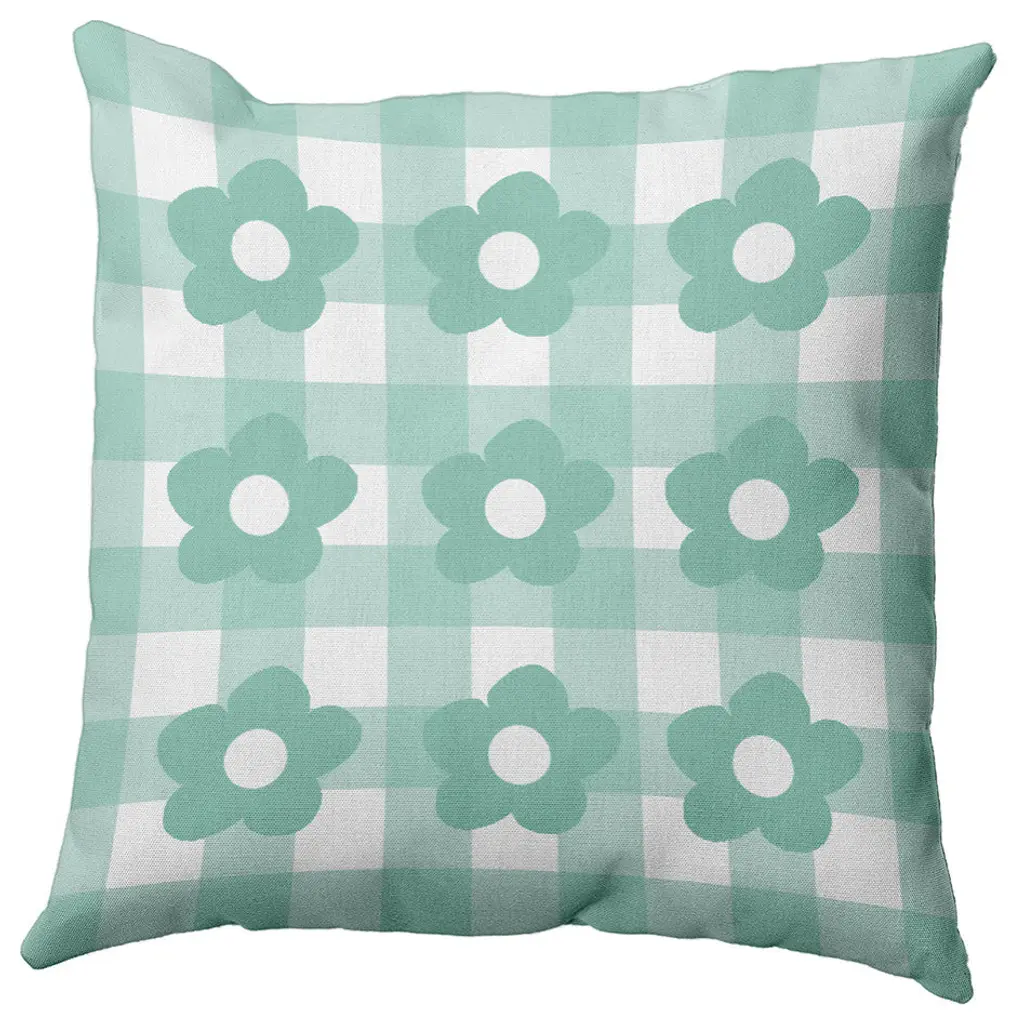 Add color and style with a Flowers on Gingham Pillow from our Girl Power collection. Belive in yourself and dream big while coordinating your decor. This pillow will look great on your bed, sofa or armchair providing comfort while you turn your dreams into reality. This pillow is made of soft spun polyester and is reversible. It is filled with down alternative and is sewn closed. Spot cleaning is recommended. This decorative pillow is printed on both sides and crafted with a soft, durable polyester exterior, and perfectly filled with down alternative for a crisp look and a comfortable sitting experience. It is sewn closed with a knife edge and can be easily spot cleaned or dry cleaned. The colorful and fun desgins of this collection are sure to inspire greatness.