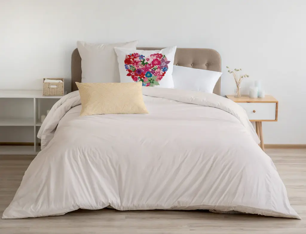 Beautify your home with a Flowery Heart Pillow from our Market Flowers Collection. This pillow will add the joy and color to your bed, sofa or armchair that you''ve been looking for! This decorative pillow is printed on both sides and crafted with a soft, durable polyester exterior, and perfectly filled with down alternative for a crisp look and a comfortable sitting experience. It is sewn closed with a knife edge and can be easily spot cleaned or dry cleaned. With the beautiful floral designs of summer, your home decor will be sunny and vibrant.
