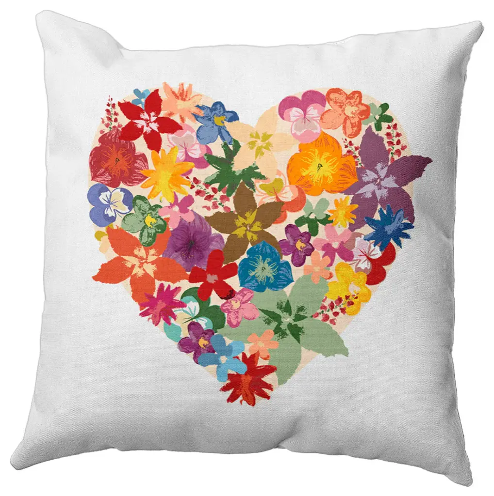 Beautify your home with a Flowery Heart Pillow from our Market Flowers Collection. This pillow will add the joy and color to your bed, sofa or armchair that you''ve been looking for! This decorative pillow is printed on both sides and crafted with a soft, durable polyester exterior, and perfectly filled with down alternative for a crisp look and a comfortable sitting experience. It is sewn closed with a knife edge and can be easily spot cleaned or dry cleaned. With the beautiful floral designs of summer, your home decor will be sunny and vibrant.