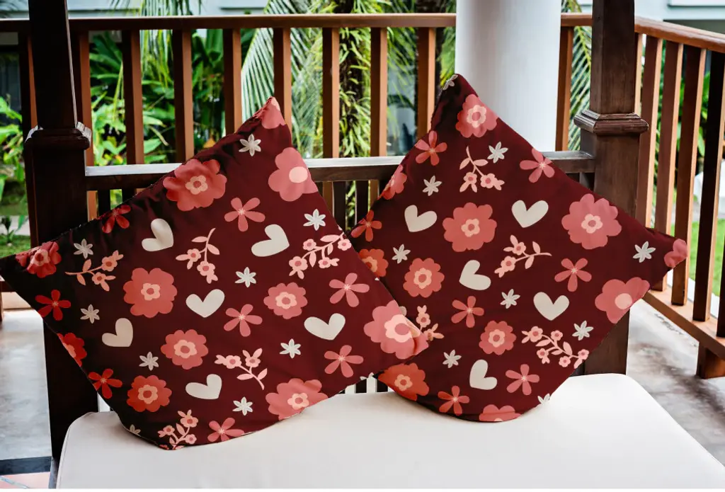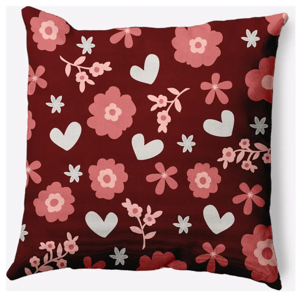 Flowery Love Valentines Indoor/outdoor Throw Pillow, Red, 20x20"