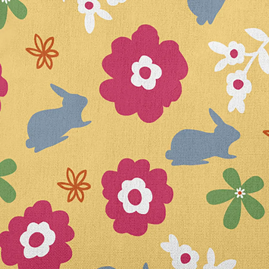 Flowery Love With Bunnies Polyester Indoor/outdoor Pillow, Yellow/blue, 20"x20"