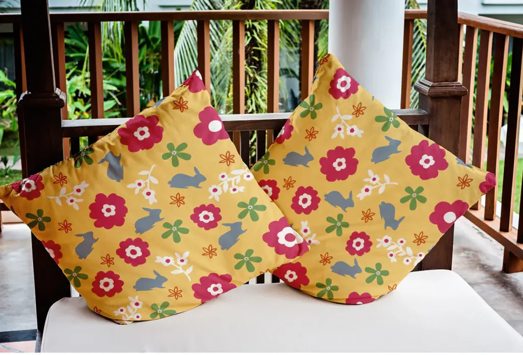 Beautify your home with a Flowery Love with Bunnies Pillow from our Flower Power Collection. This indoor/outdoor pillow will add the joy and color to your porch, deck or patio that you''ve been looking for! This decorative pillow is printed on both sides and crafted with a soft, durable polyester exterior, and filled with down alternative for a crisp look and a comfortable sitting experience. The fabric is resistant to weather, mold, and mildew so you can accentuate your indoor or outdoor decor. It is sewn closed with a knife edge and can be easily spot cleaned or dry cleaned. With floral designs and partner patterns, your home decor will be sunny and vibrant.