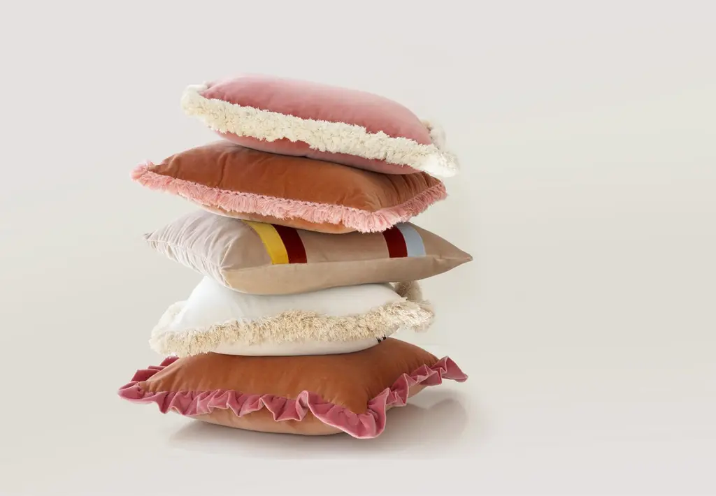 Fluorite Sand And Rose Velvet Deluxe Handmade Decorative Pillow