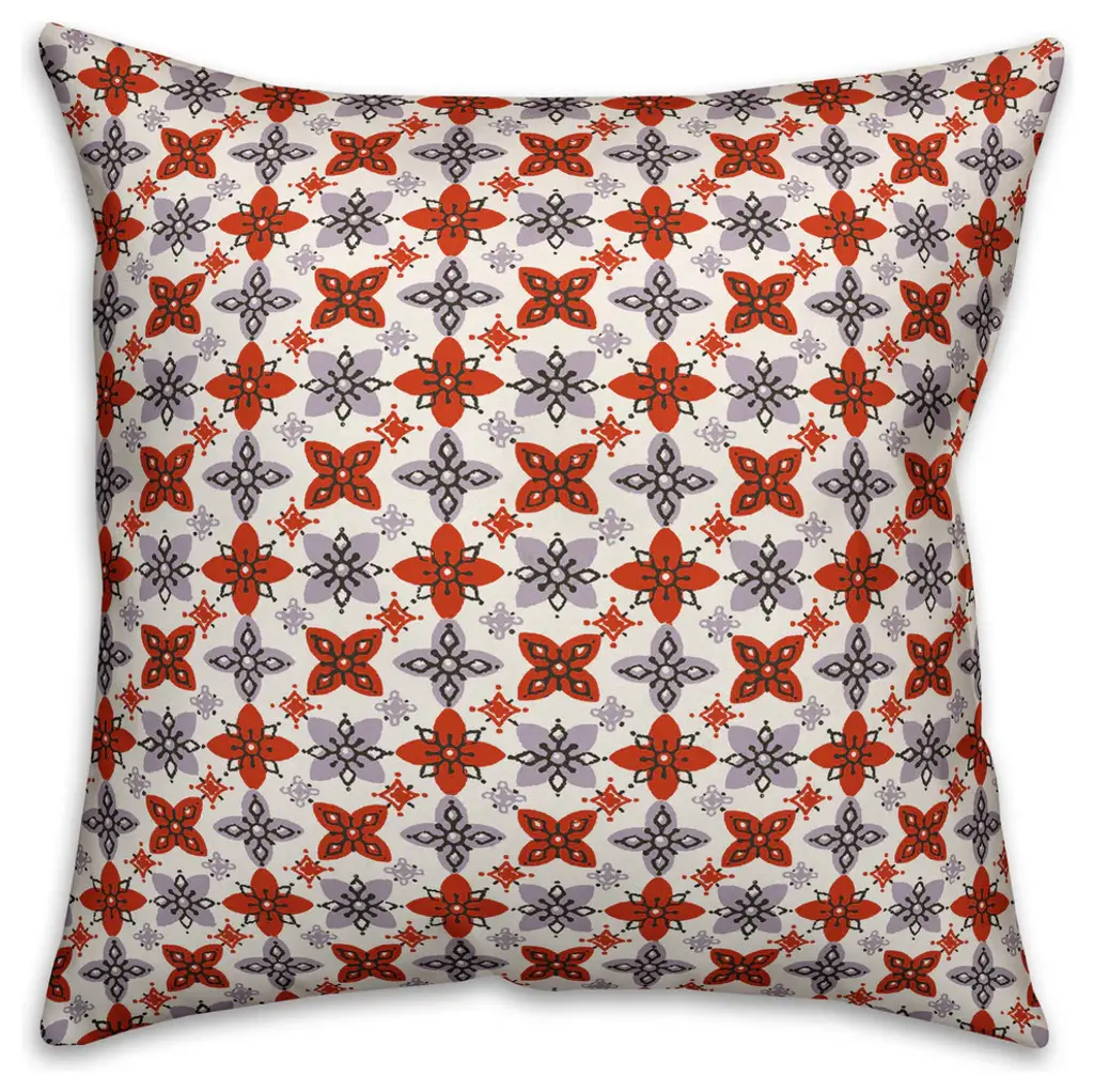 Folk Floral Pattern, Red And Purple Throw Pillow, 18"x18"