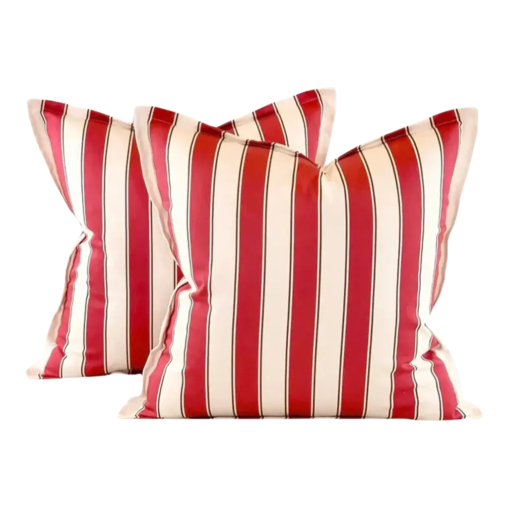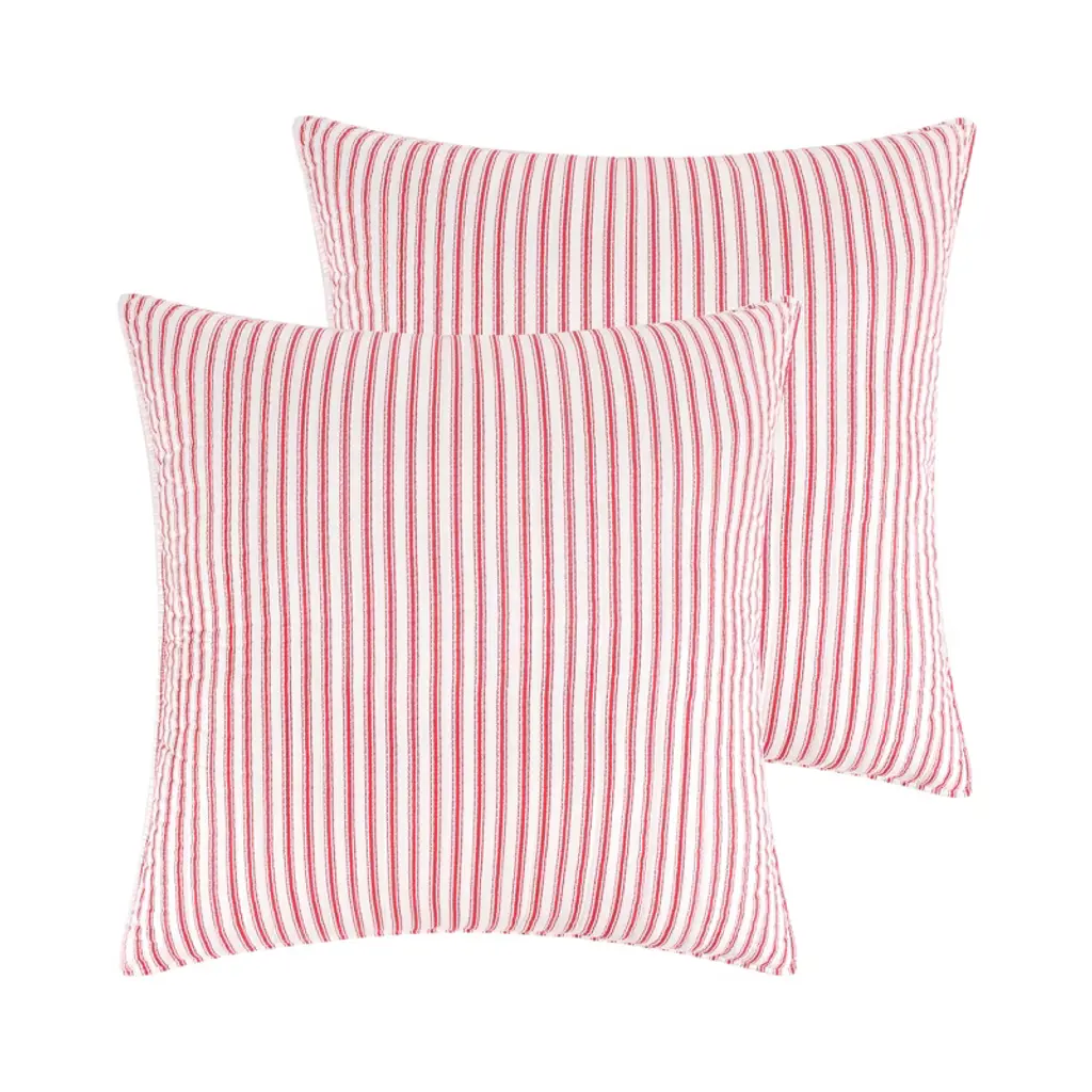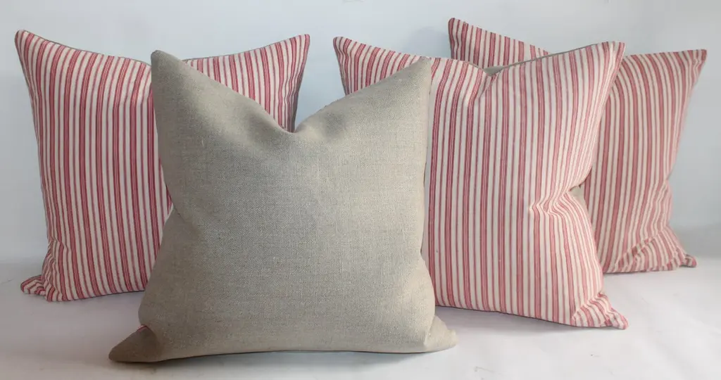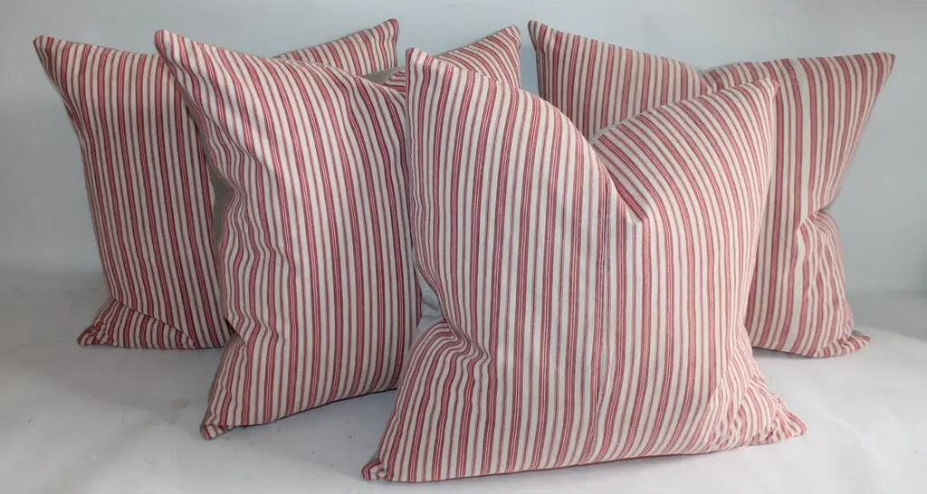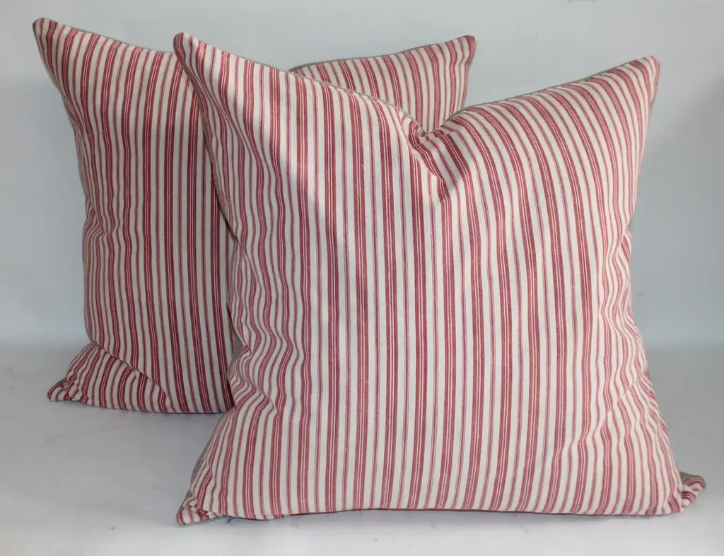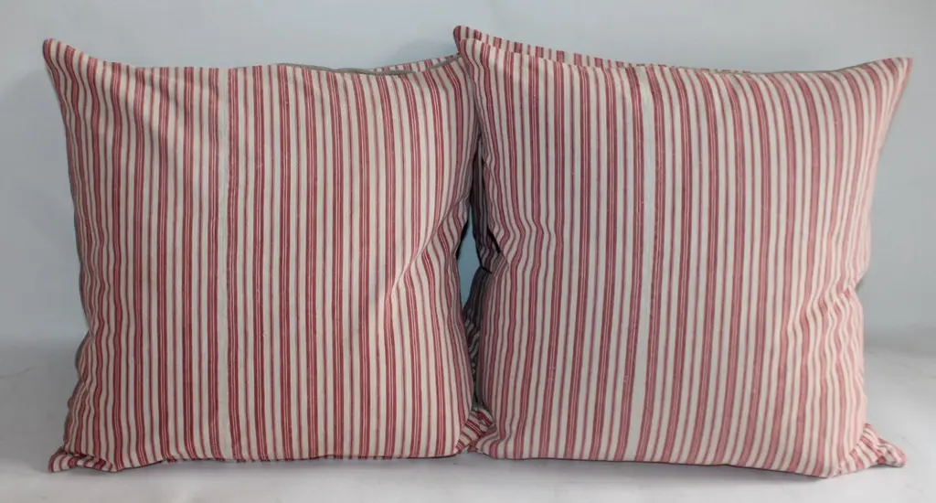 Four 19th Century Red And White Stripe Ticking Pillows, Collection Of Four